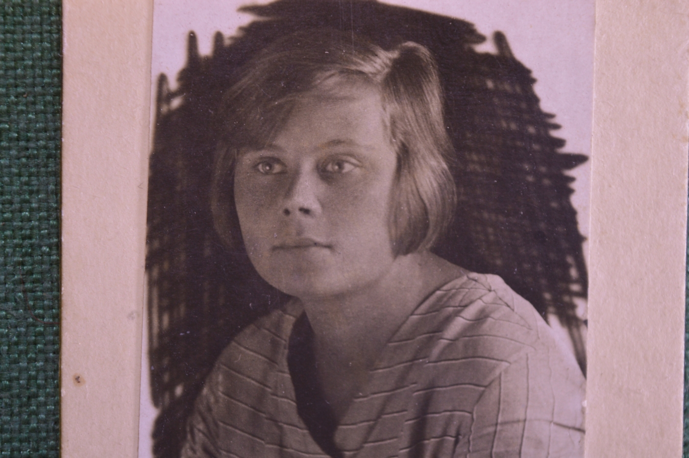 Фотография старинная "Девушка в полосатой кофте". Visit Portrait.