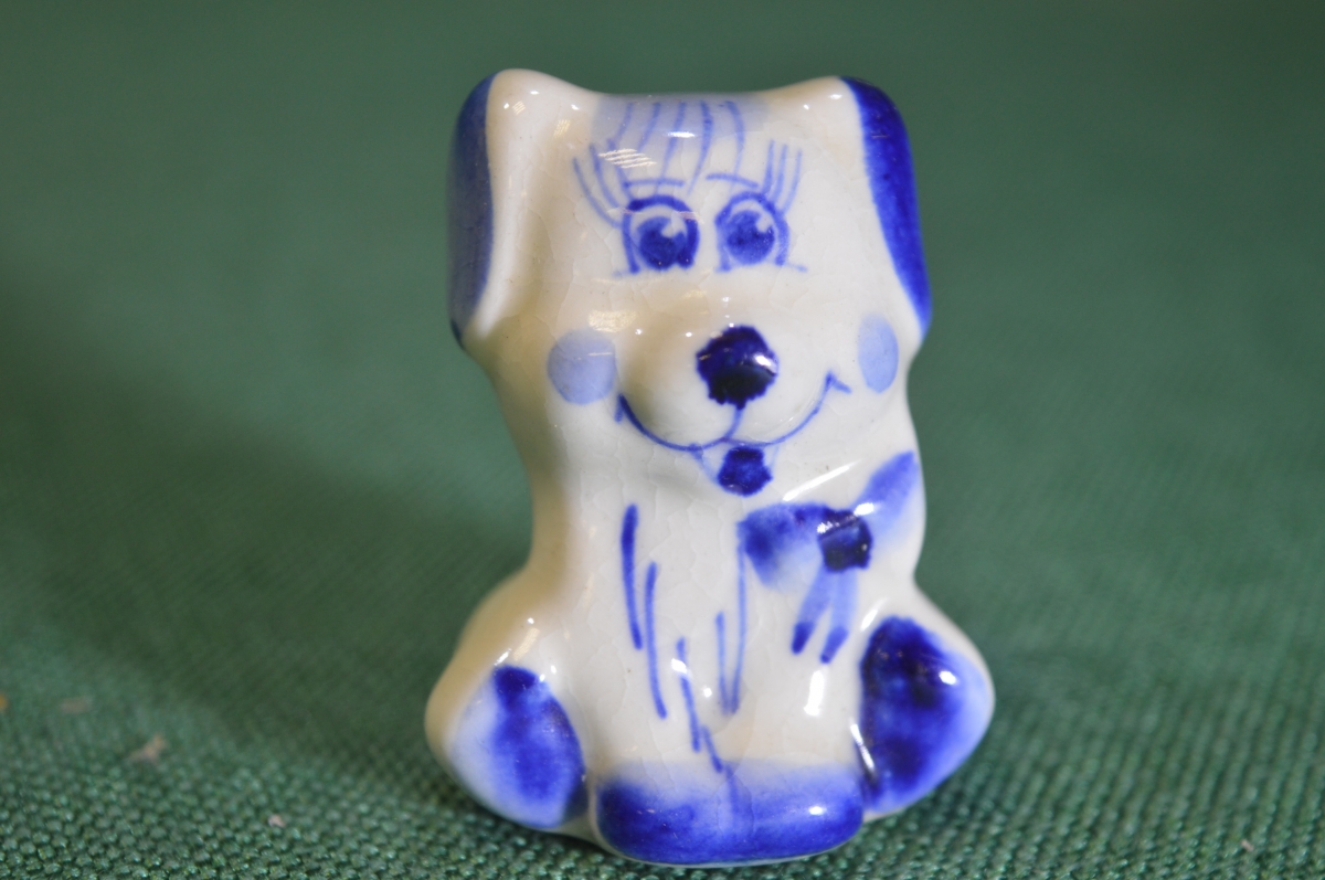 Фигурка статуэтка миниатюрная "Собака собачка". Фарфор. Керамика. Гжель.
