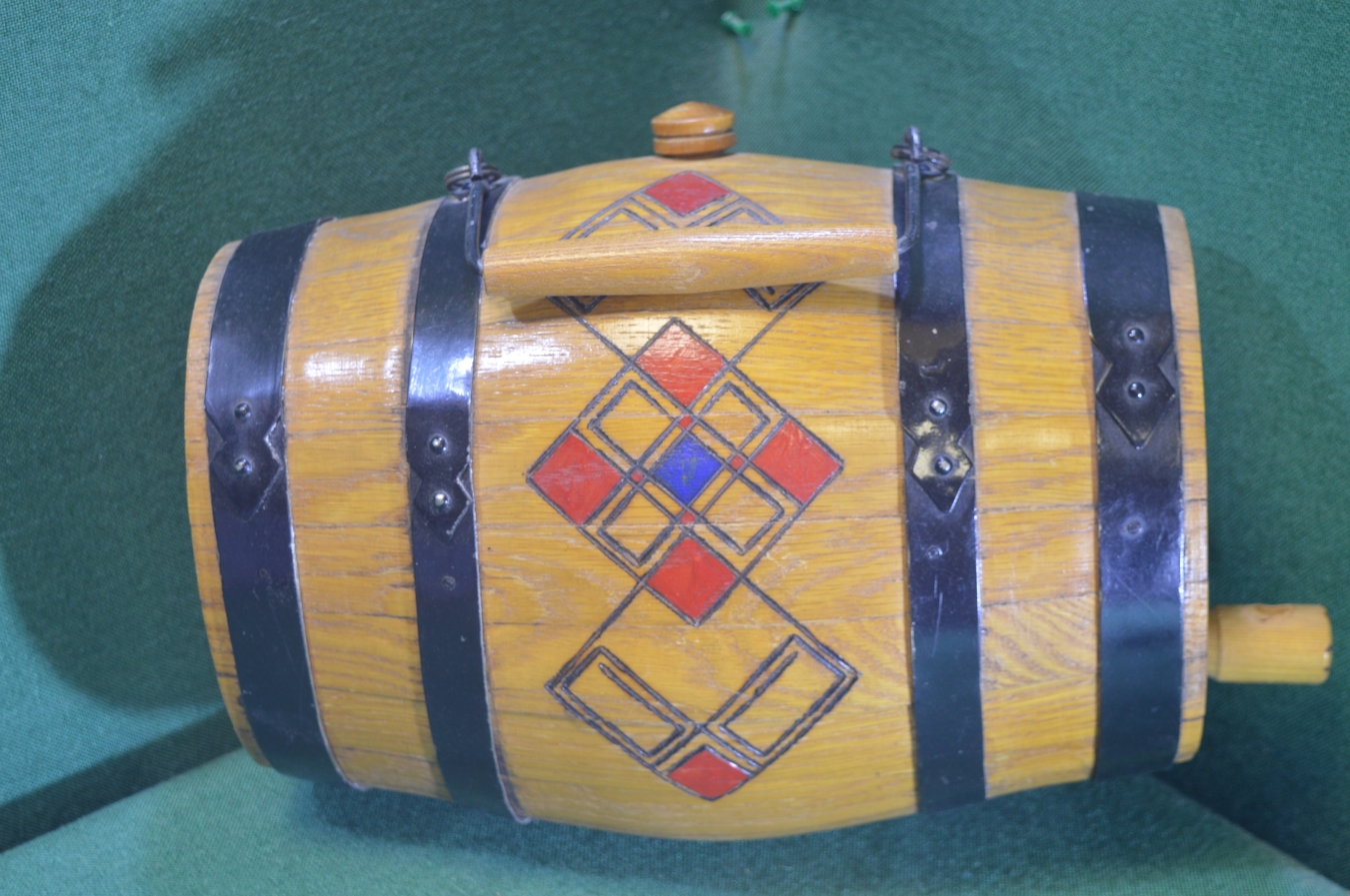 Бочка деревянная бочонок. Резьба. Дерево. Металл. СССР.