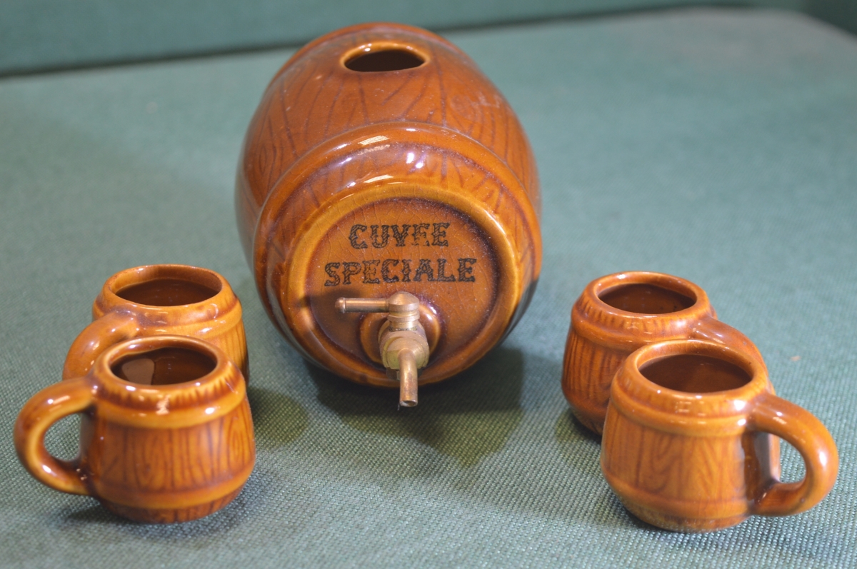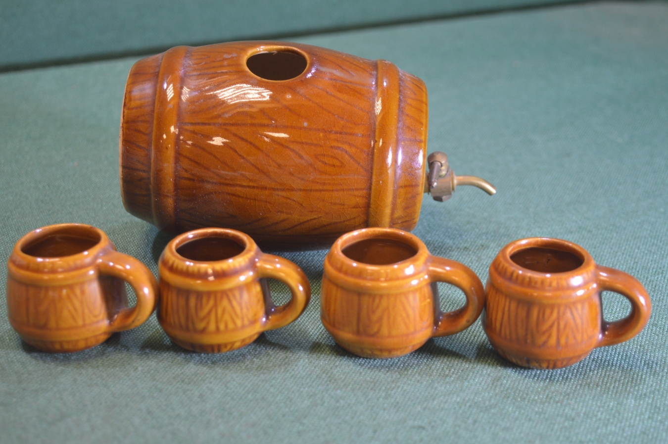 Бочка керамическая и 4 кружки бочонка. Керамика.