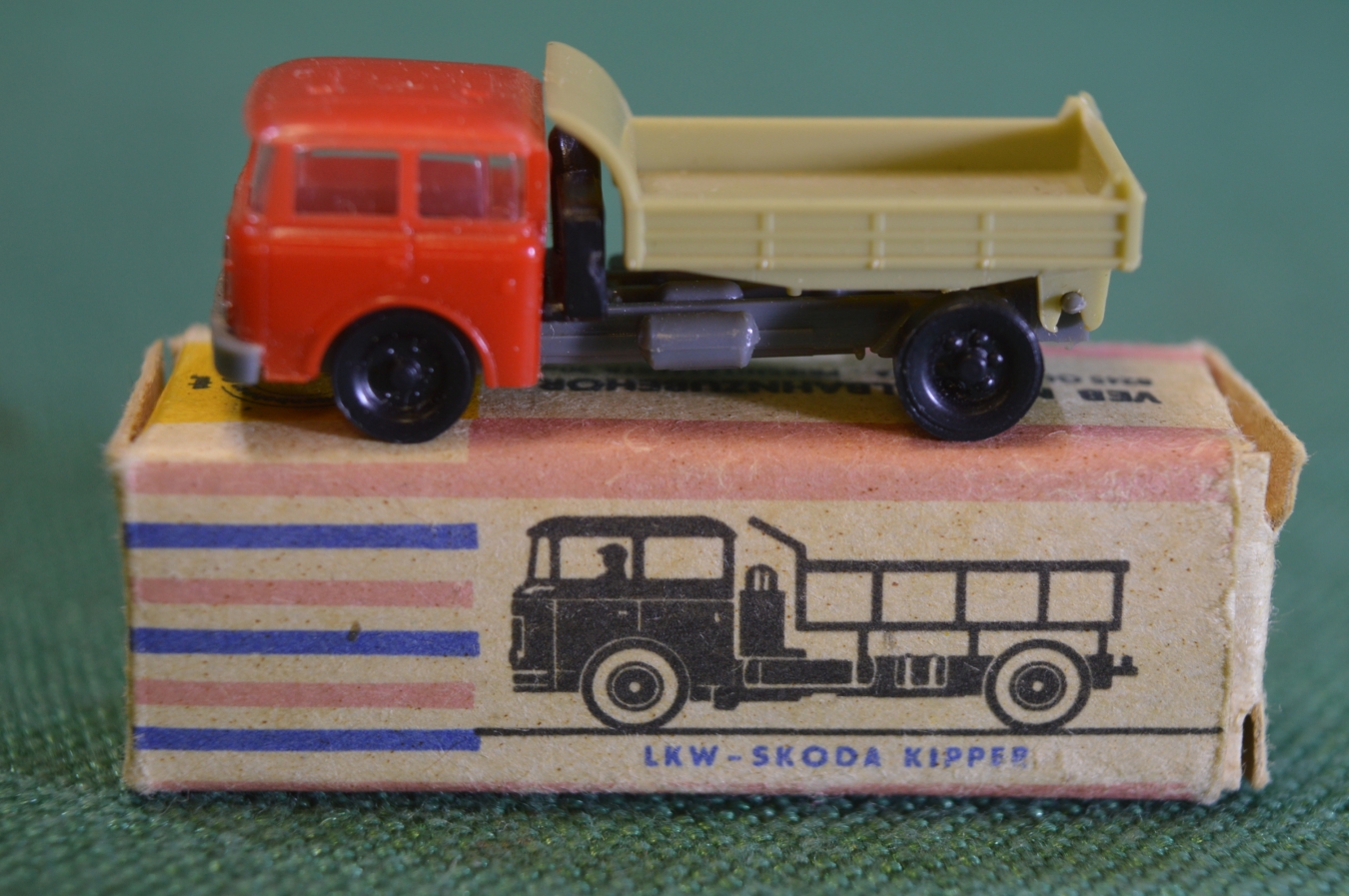 Модель машинка "Шкода самосвал". Коробка. VEB Permot HO. ГДР. Германия.