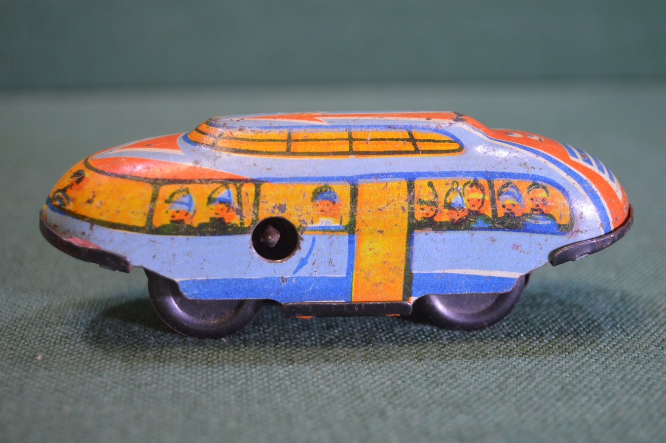 Игрушка жестяная "Автобус с трамплином". Машинка. Жесть. СССР.