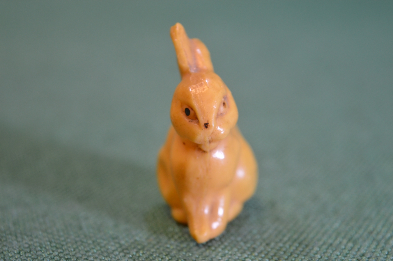 Игрушка фигурка "Заяц зайка". Целлулоид. СССР. 1940е.