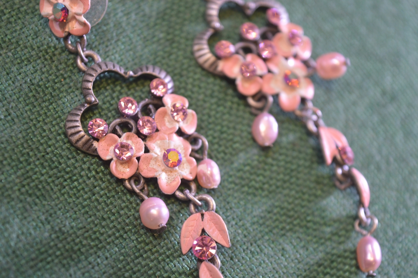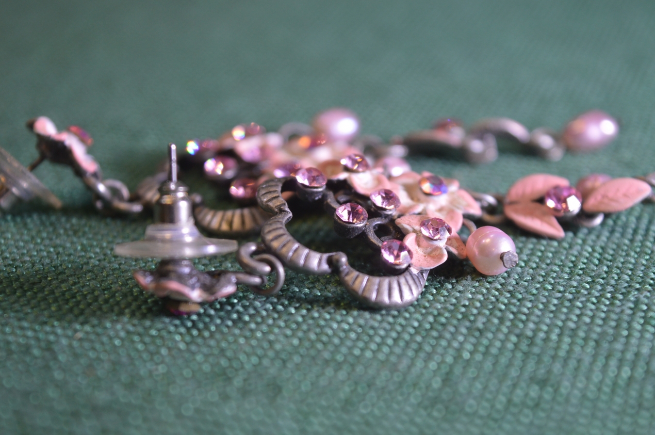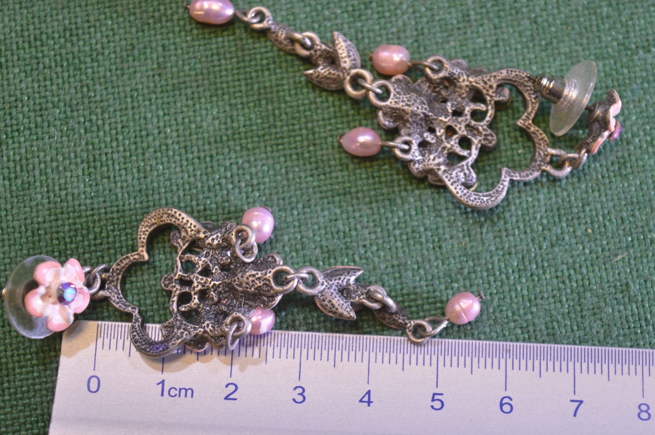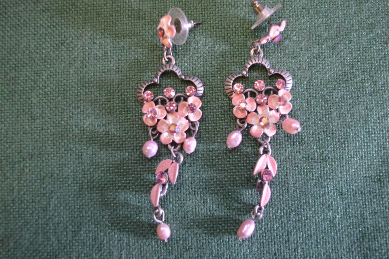 Серьги, сережки "Букет цветов". Металл, вставки.