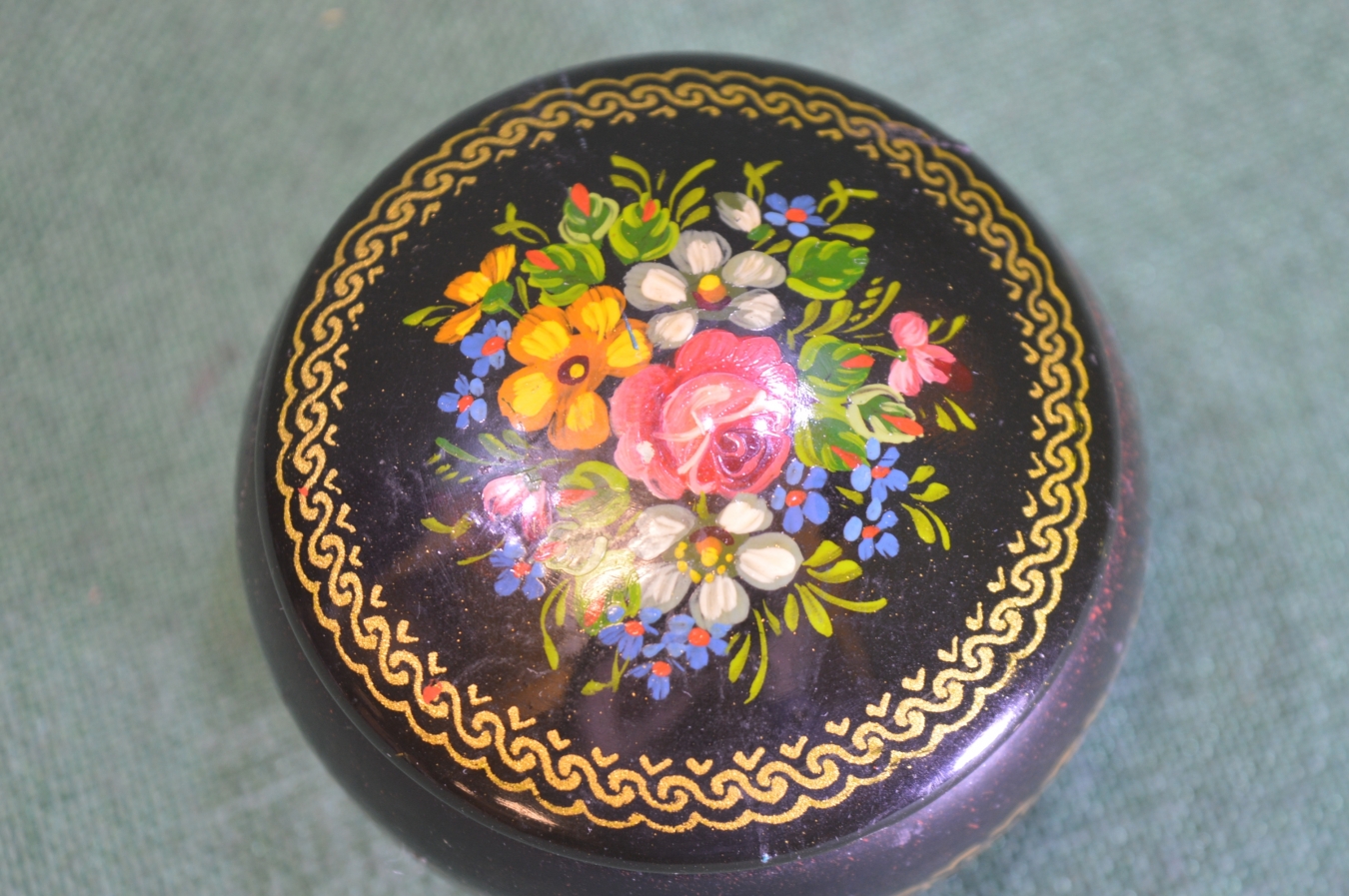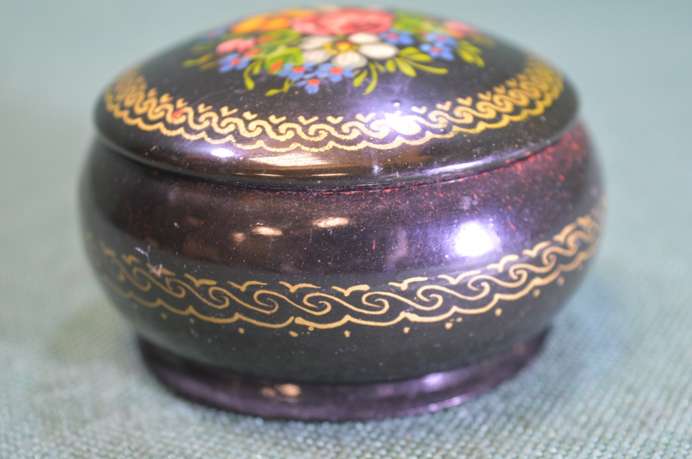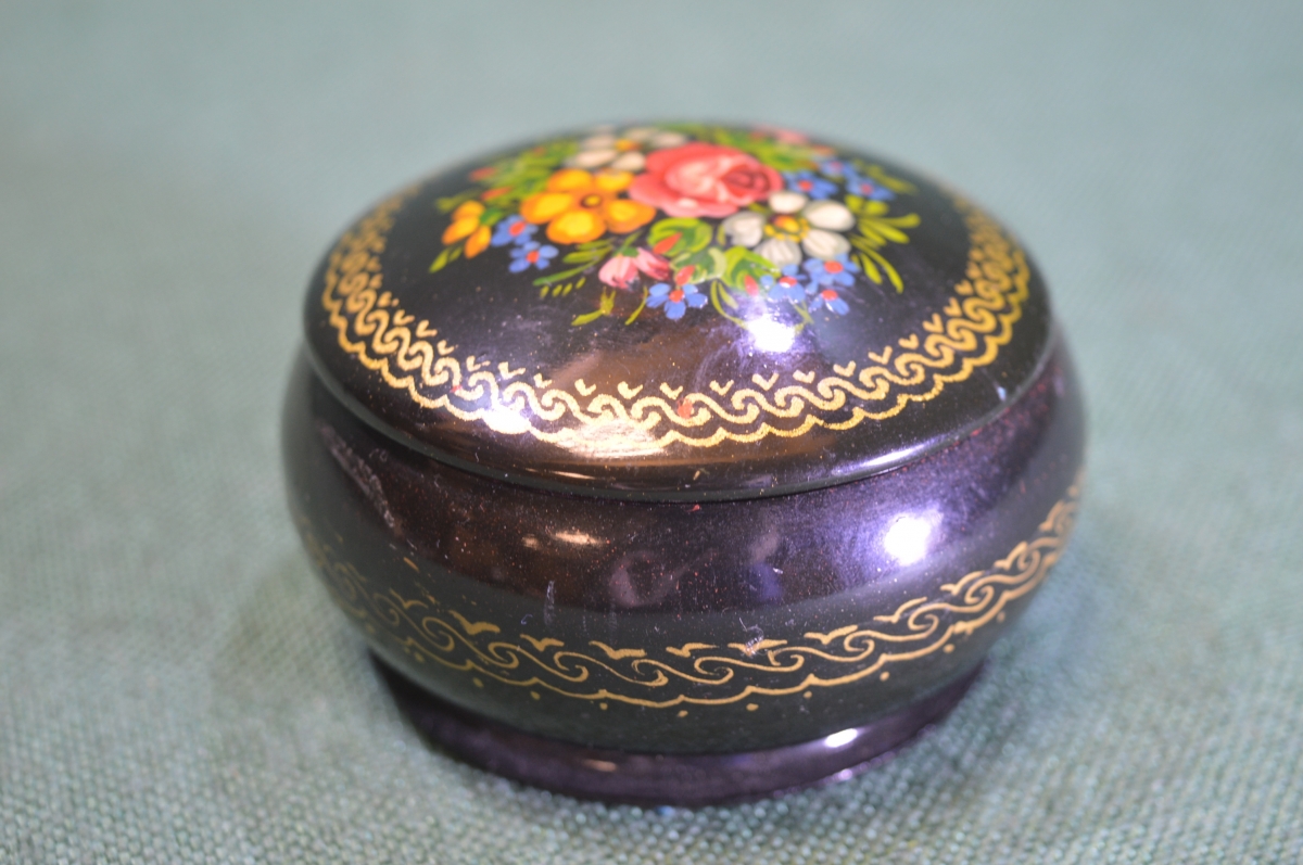Шкатулка металлическая "Цветы". Роспись. СССР.