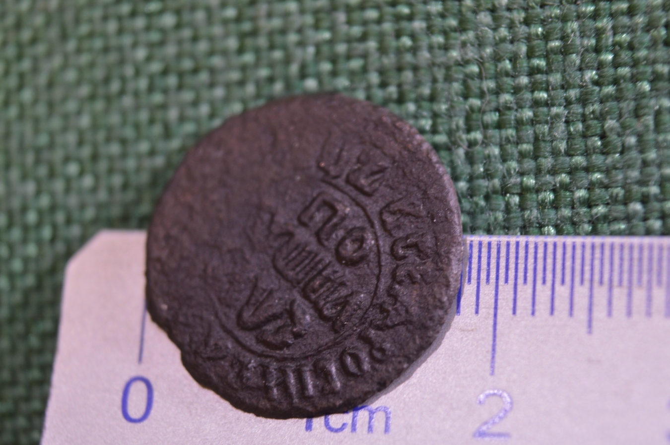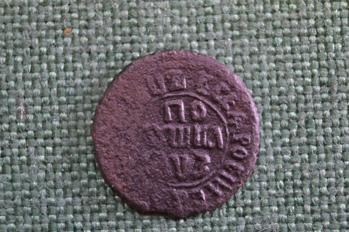 Монета Полушка 1707 года. Петр I, Российская Империя.