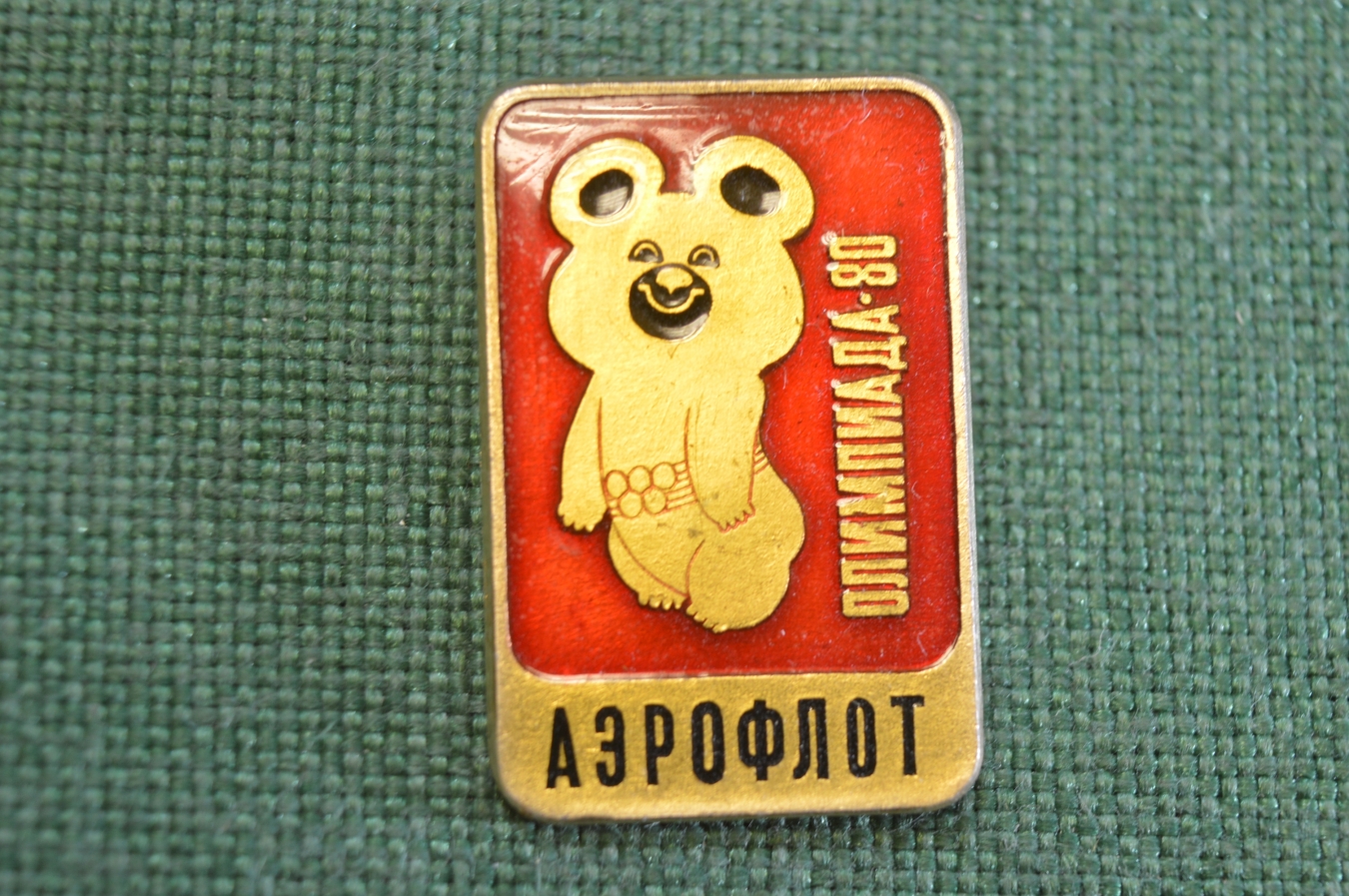 Знак, значок "Аэрофлот, Олимпиада 80". Олимпийский мишка, авиация. 1980 год.