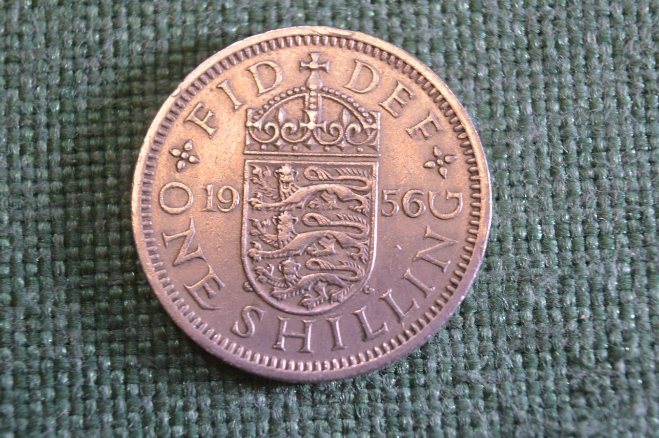 Монета 1 шиллинг 1956 год. One shilling. Елизавета II, Великобритания.