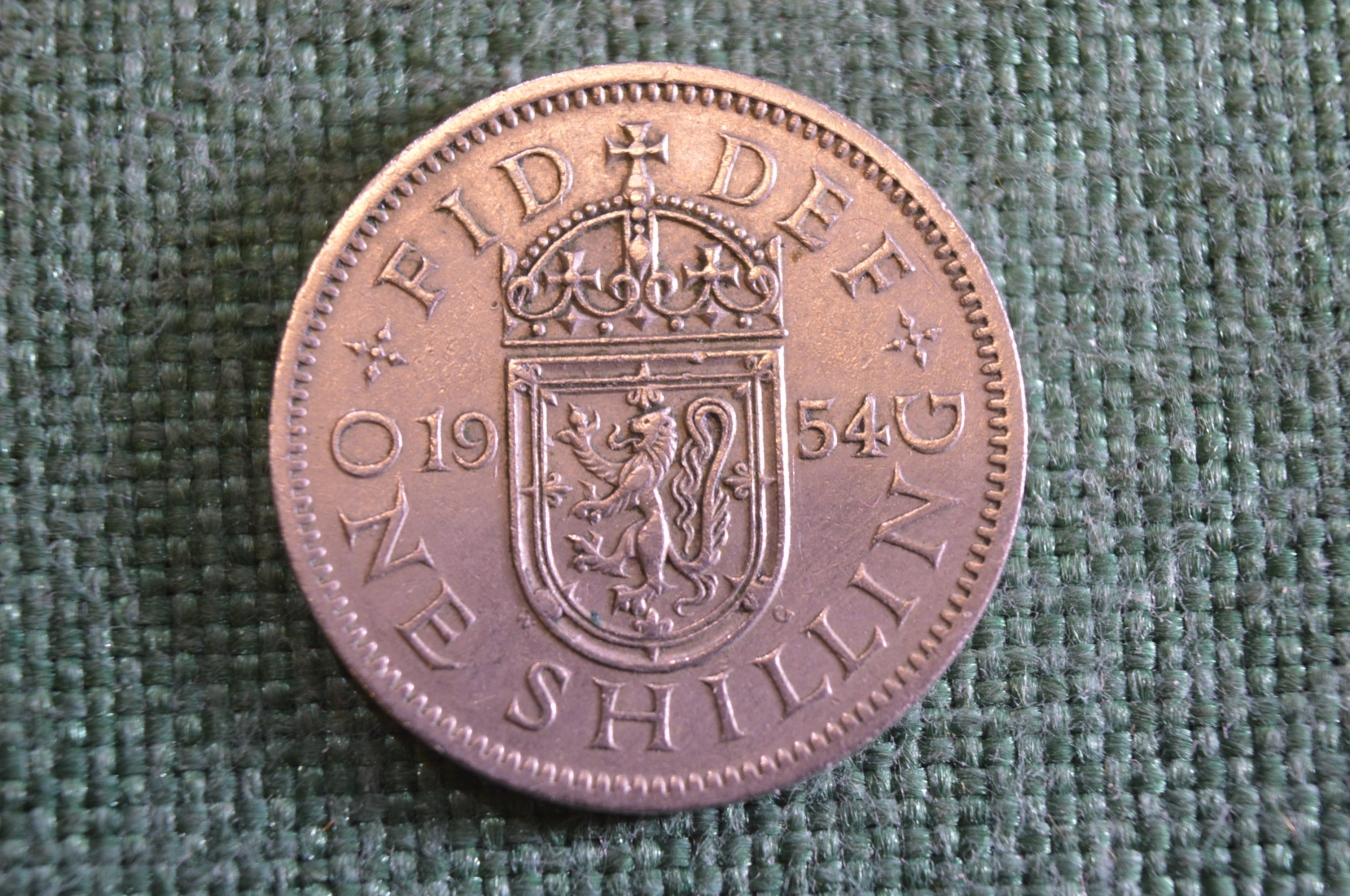 Монета 1 шиллинг 1954 год. One shilling. Елизавета II, Великобритания.