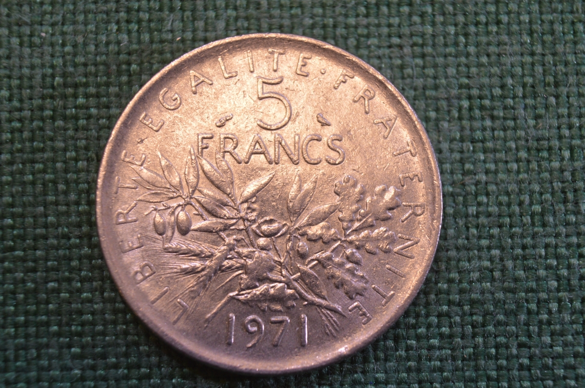 Монета 5 франков 1971 года. Francs. Republique Francaise, Франция.