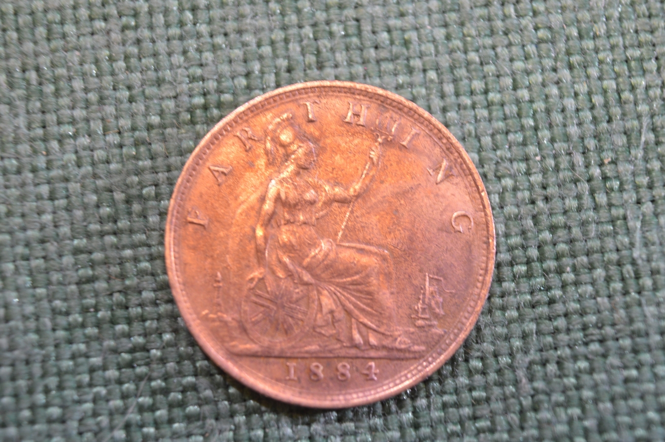 Монета 1 фартинг 1884 года. Farting. Виктория, Великобритания.