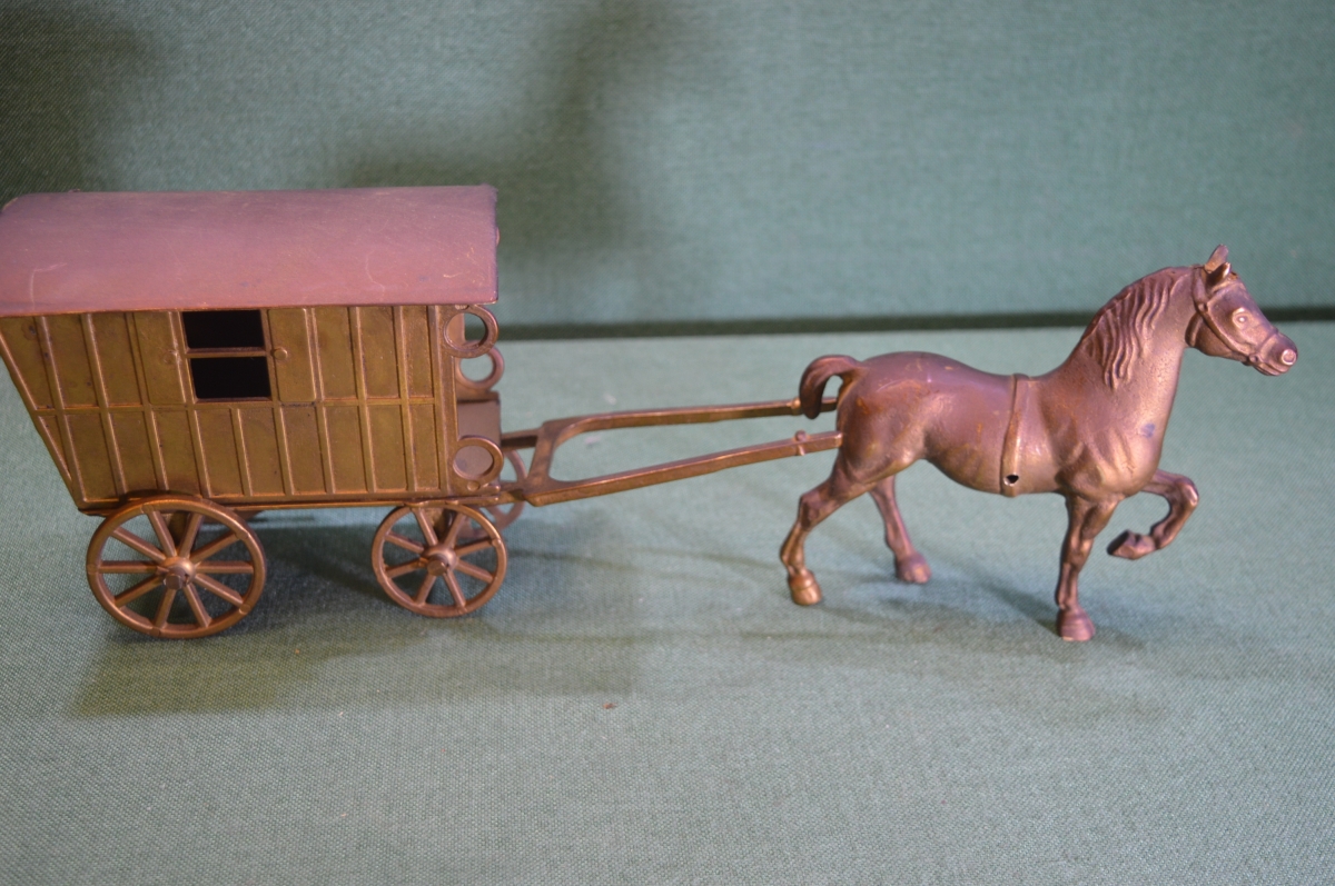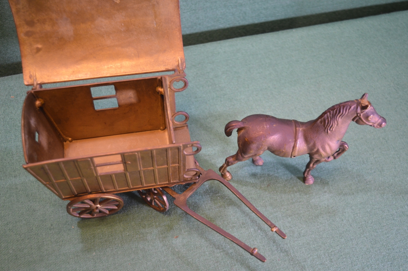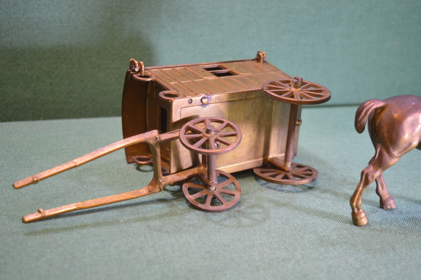 Шкатулка массивная латунная "Повозка с лошадью". Дефект.