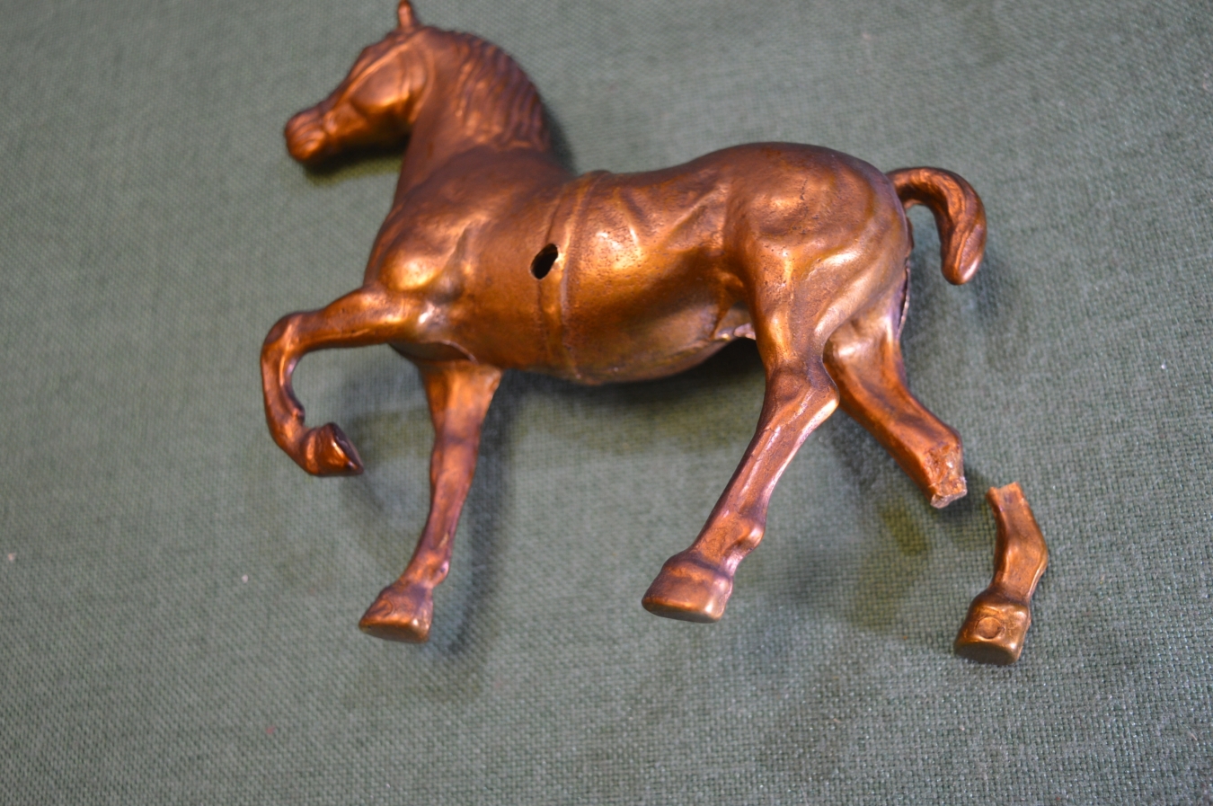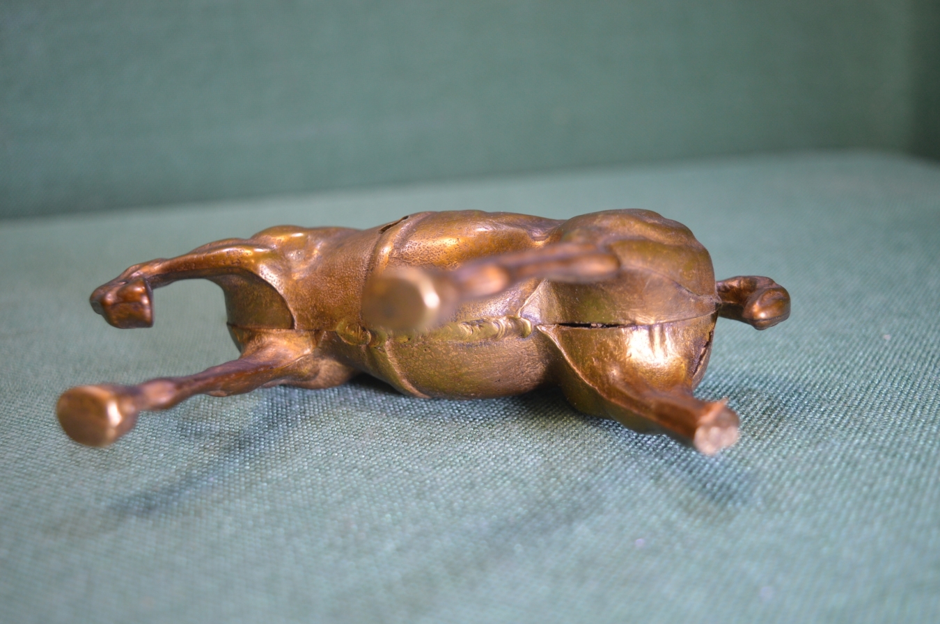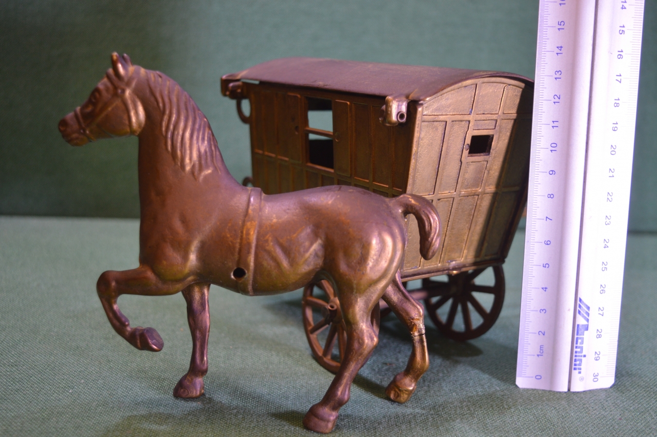 Шкатулка массивная латунная "Повозка с лошадью". Дефект.