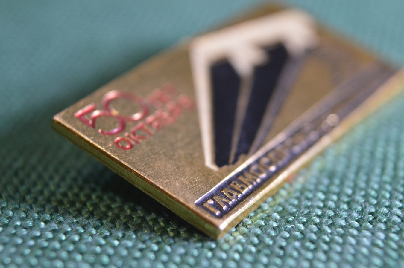 Знак, значок "Главмоспромстройматериалы, 50 лет Октября". #Z3