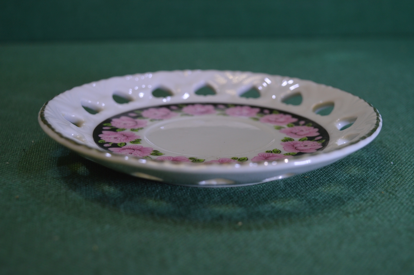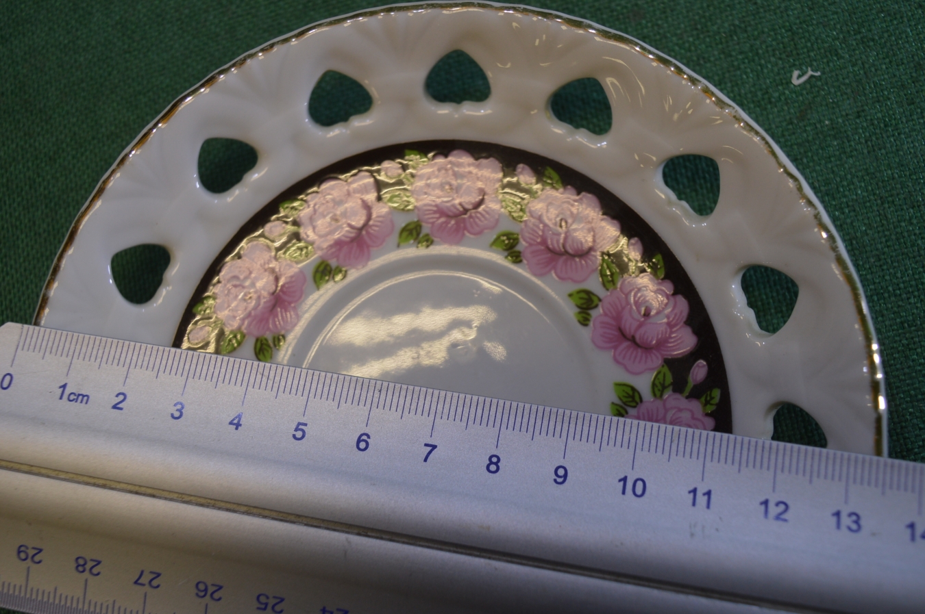 Тарелка фарфоровая, блюдечко. Розы, сердечки. Фарфор.