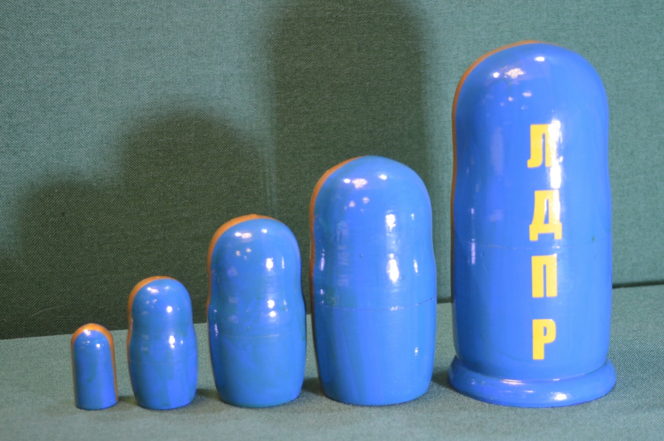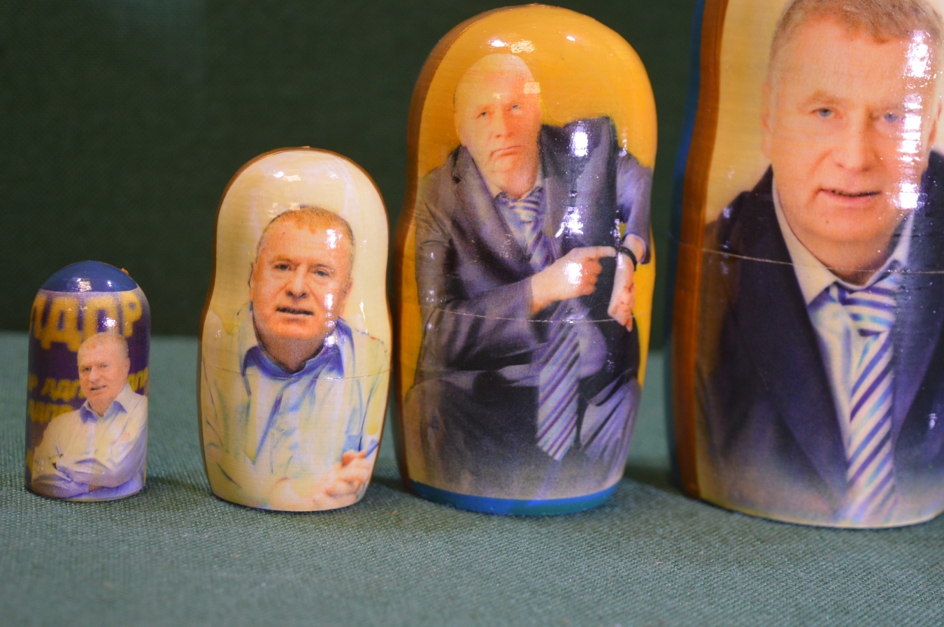 Матрешка "ЛДПР Жириновский". 5 в 1. Дерево. Роспись. Молодая Россия. 1990е.