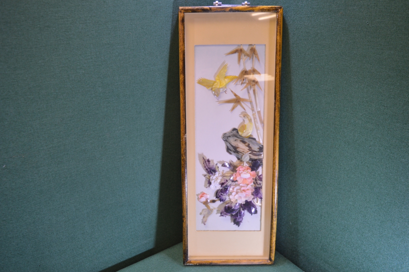 Панно настенное "Птицы". Дерево. Перламутр. Старый Китай. 1950е.