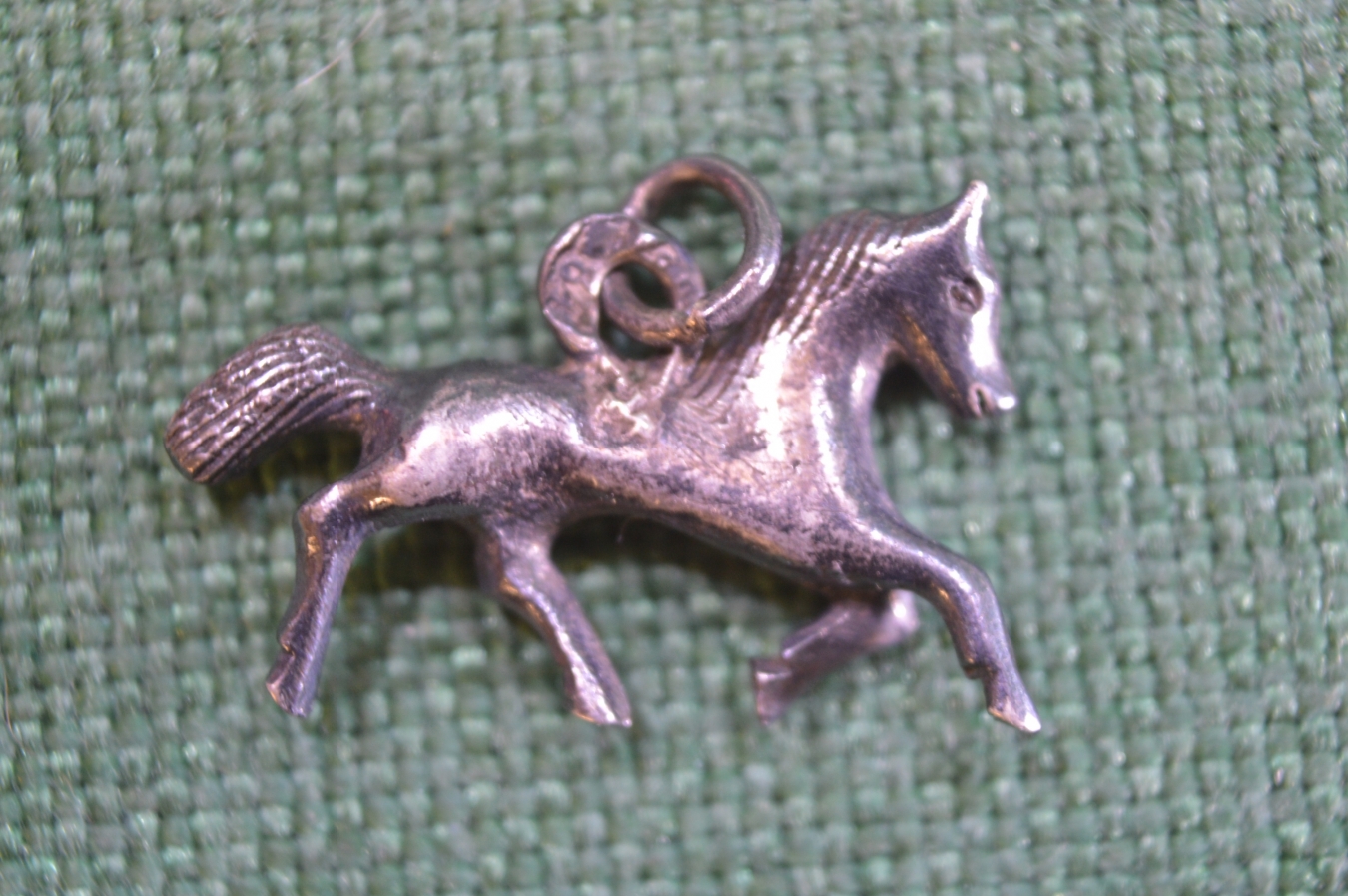 Подвеска старинная шатлен кулон "Конь Лошадь". Серебро 84 проба. Царская Россия.