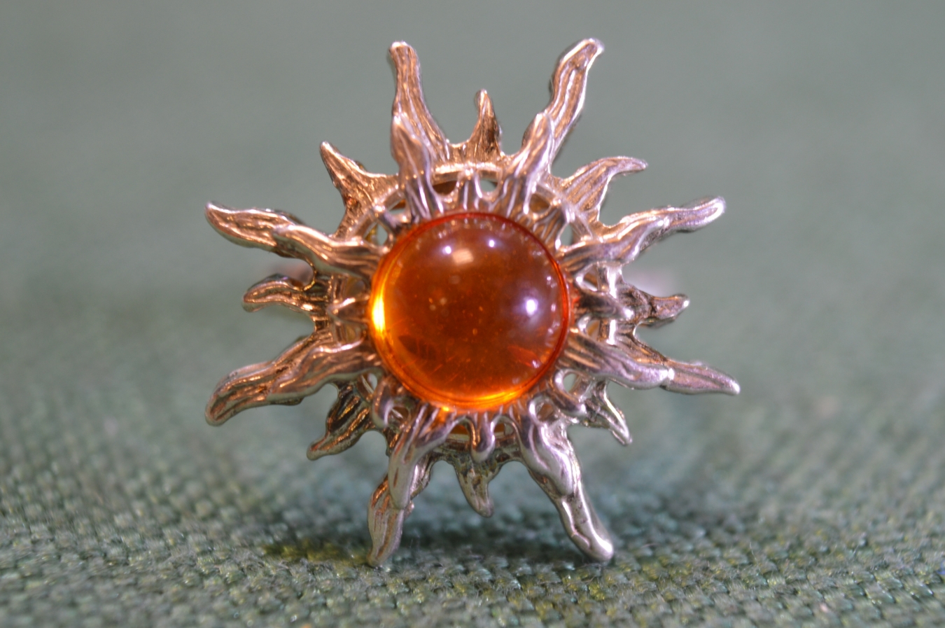 Кольцо женское "Солнце". Серебро 925 проба. Вставка под янтарь.
