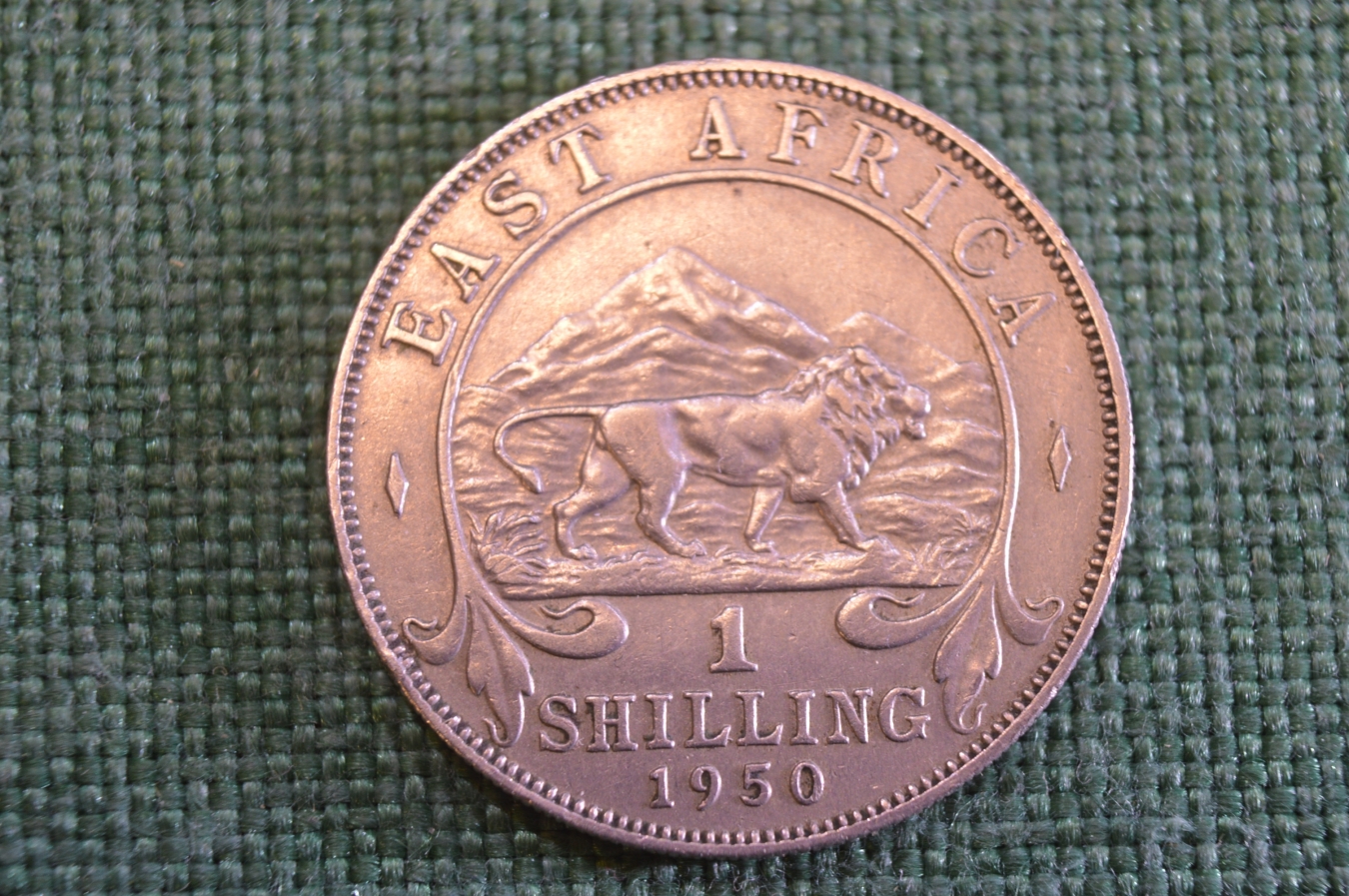 Монета 1 шиллинг 1950 год. Лев. Георг VI. Восточная Африка, East Africa.