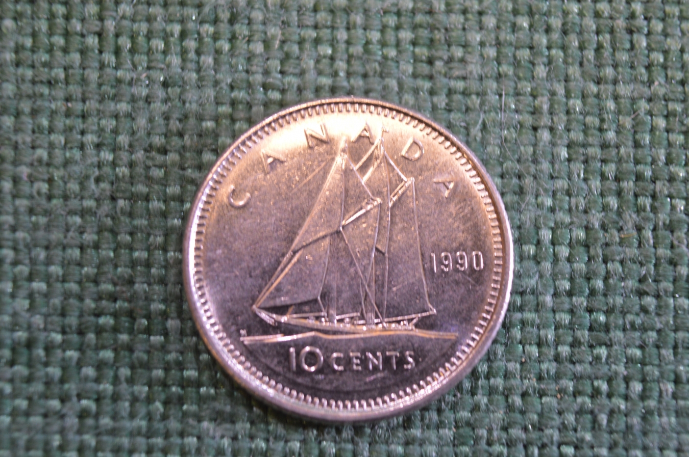 Монета 10 центов 1990 год. Парусник. Елизавета II. Canada, Канада.