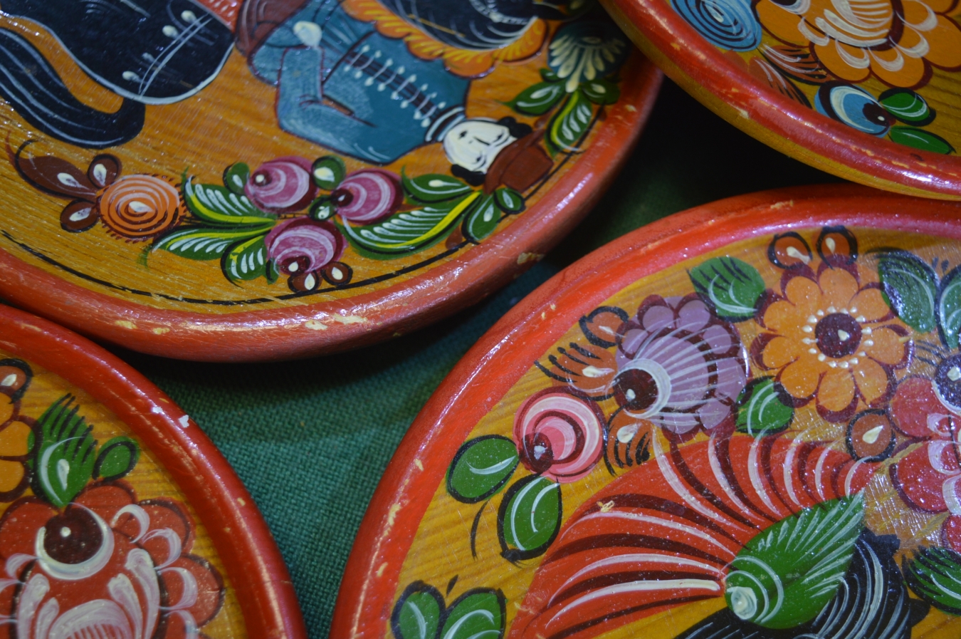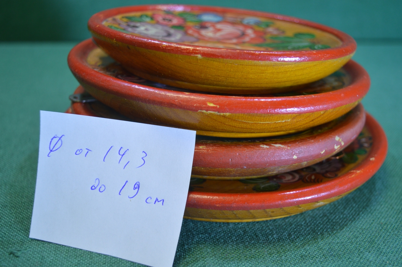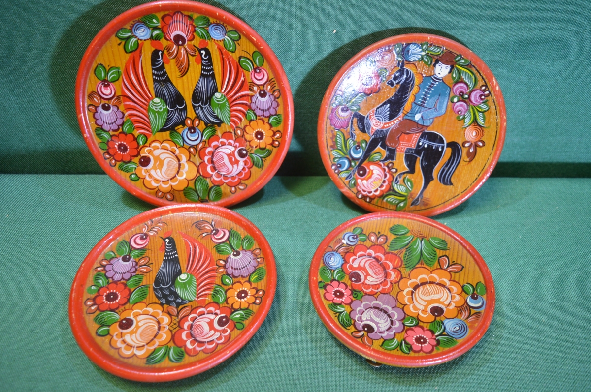 Тарелки настенные деревянные (4 штуки). Дерево, роспись. Народные промыслы.