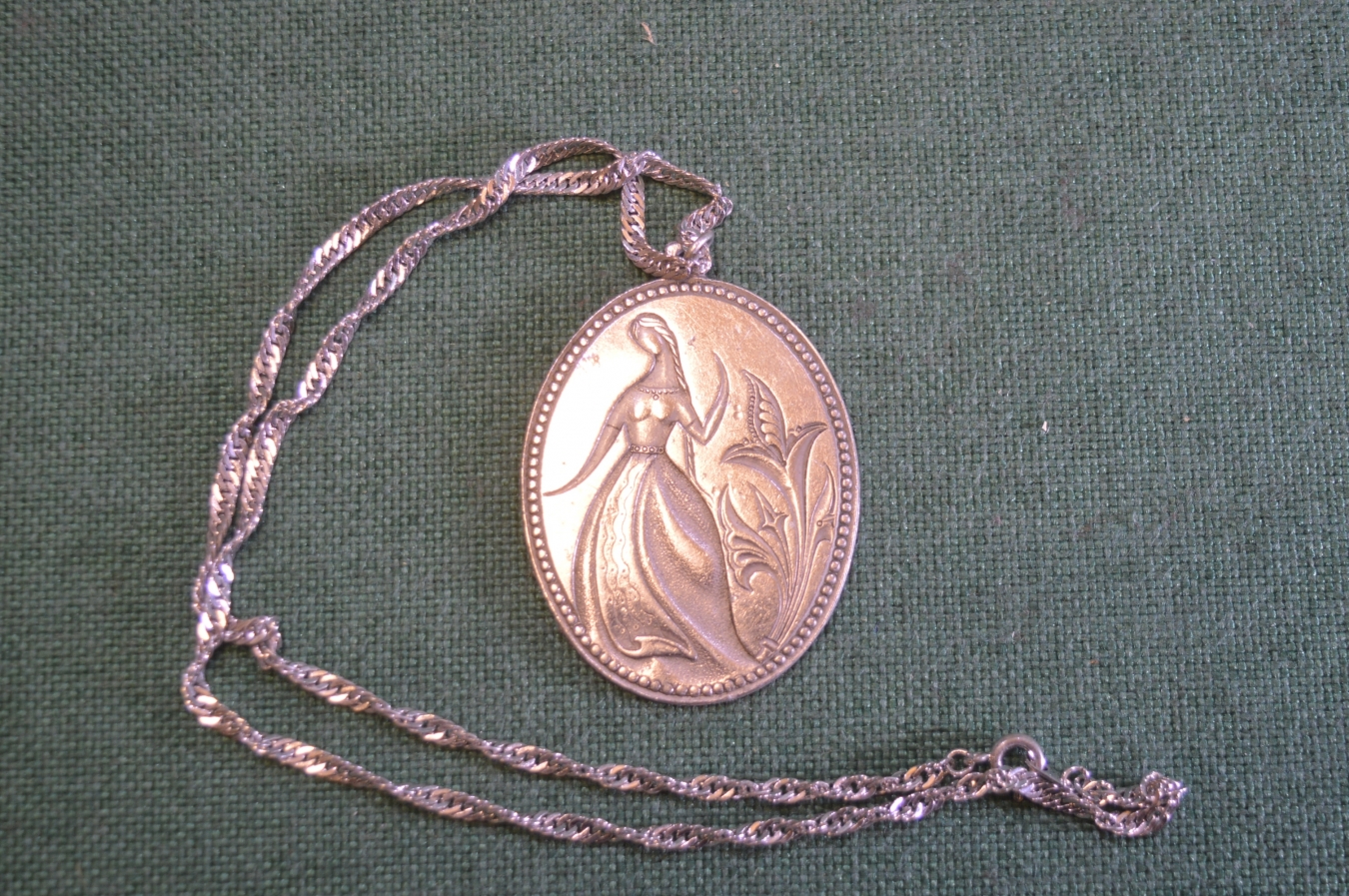 Кулон медальон на цепочке "Девушка". Легкий металл. Ереван. Армения. СССР.