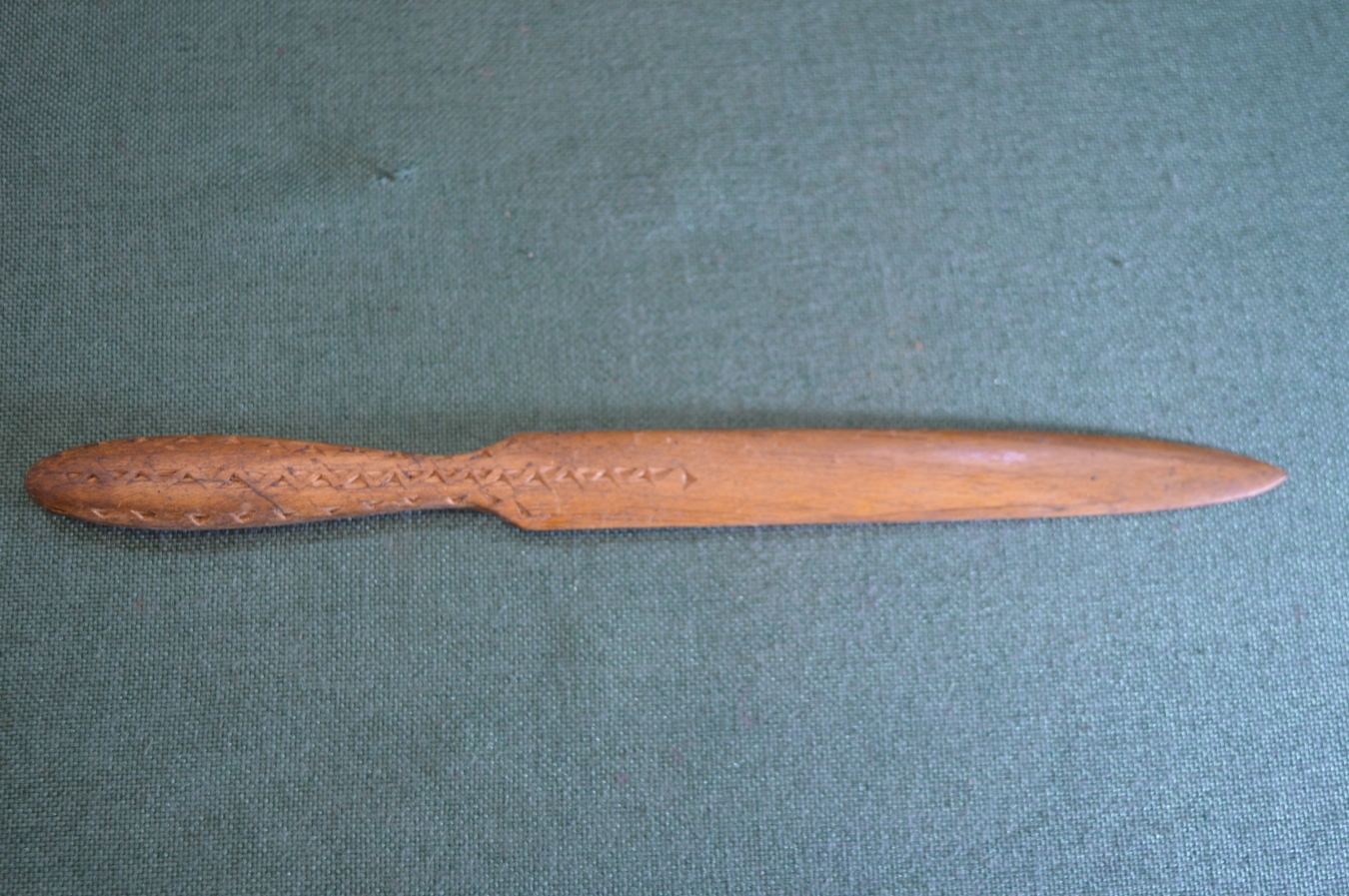 Нож деревянный старинный для писем и конвертов. Дерево. Резьба. СССР. 1950е.