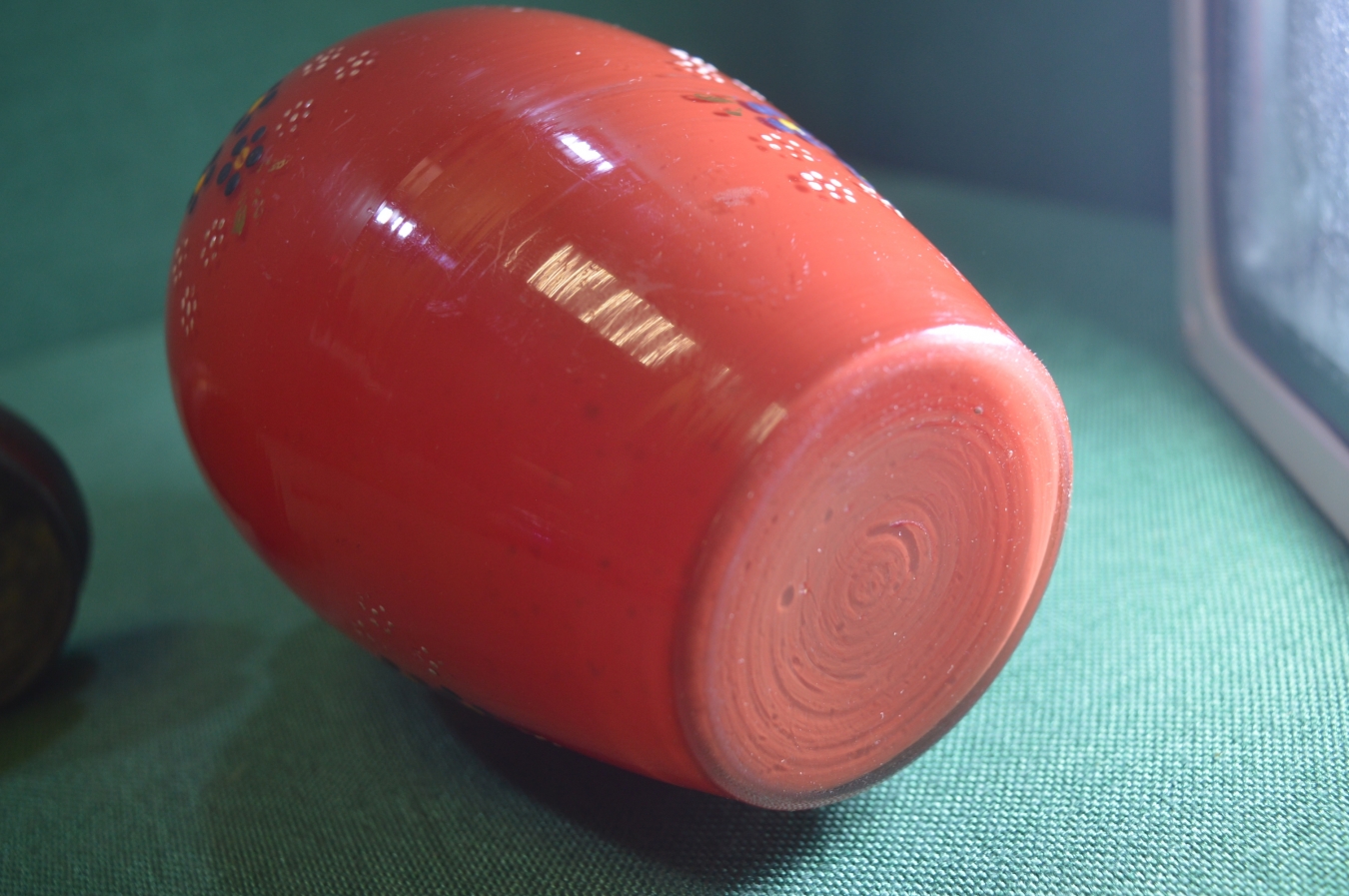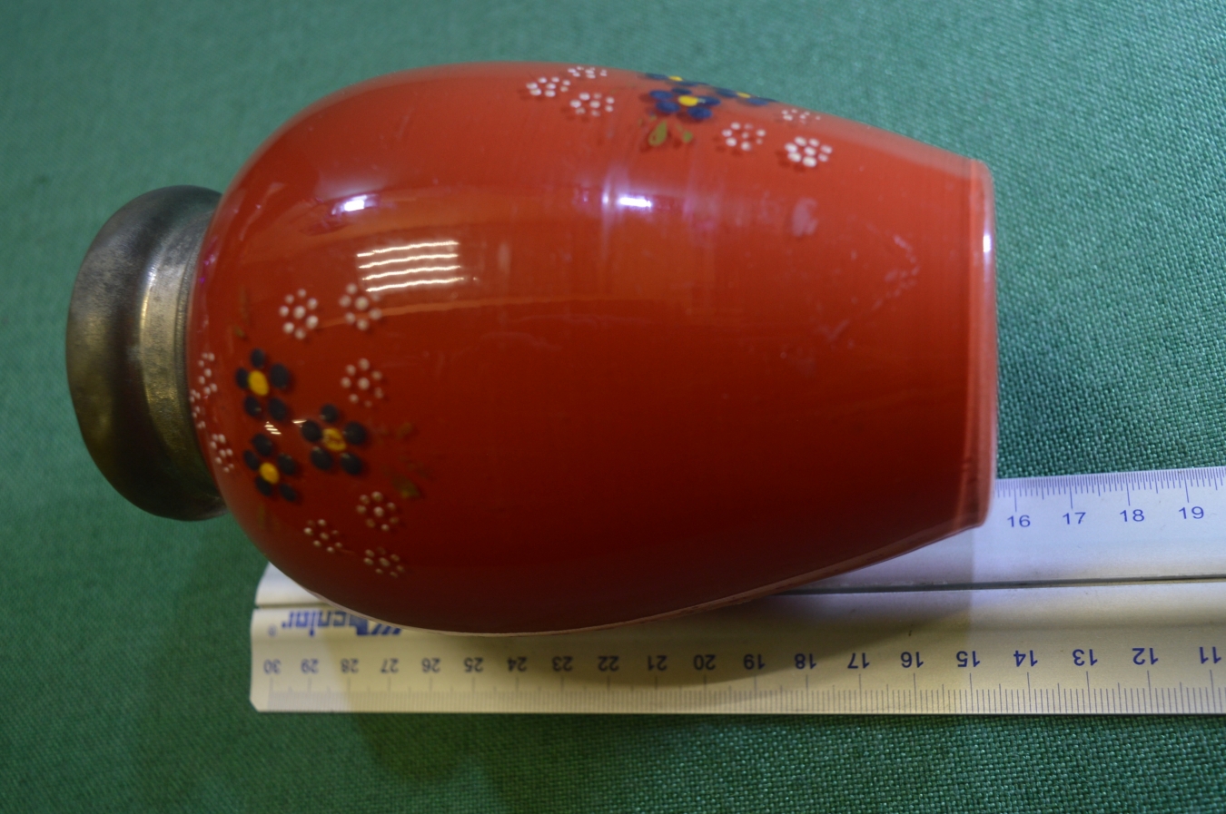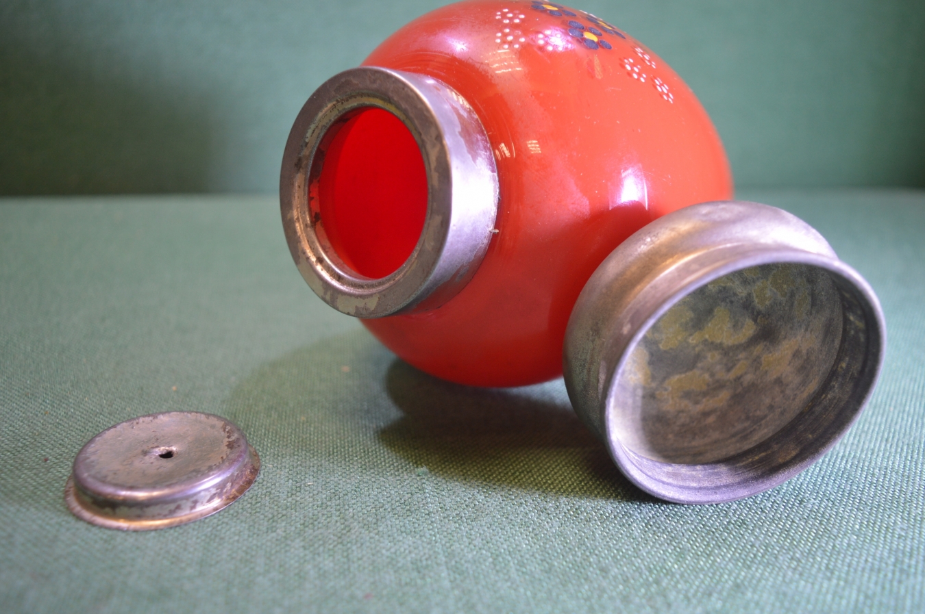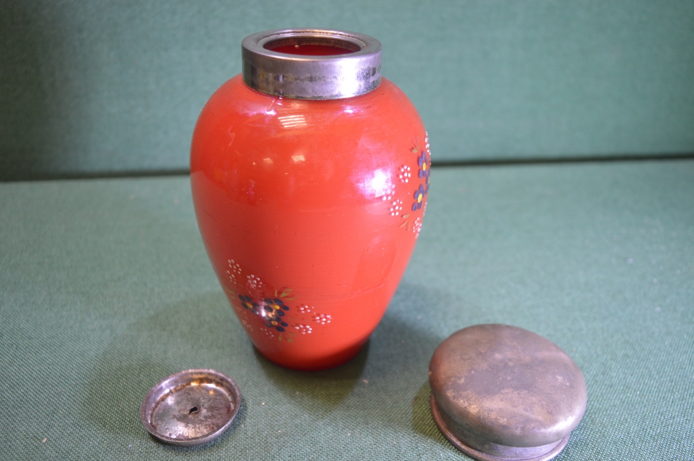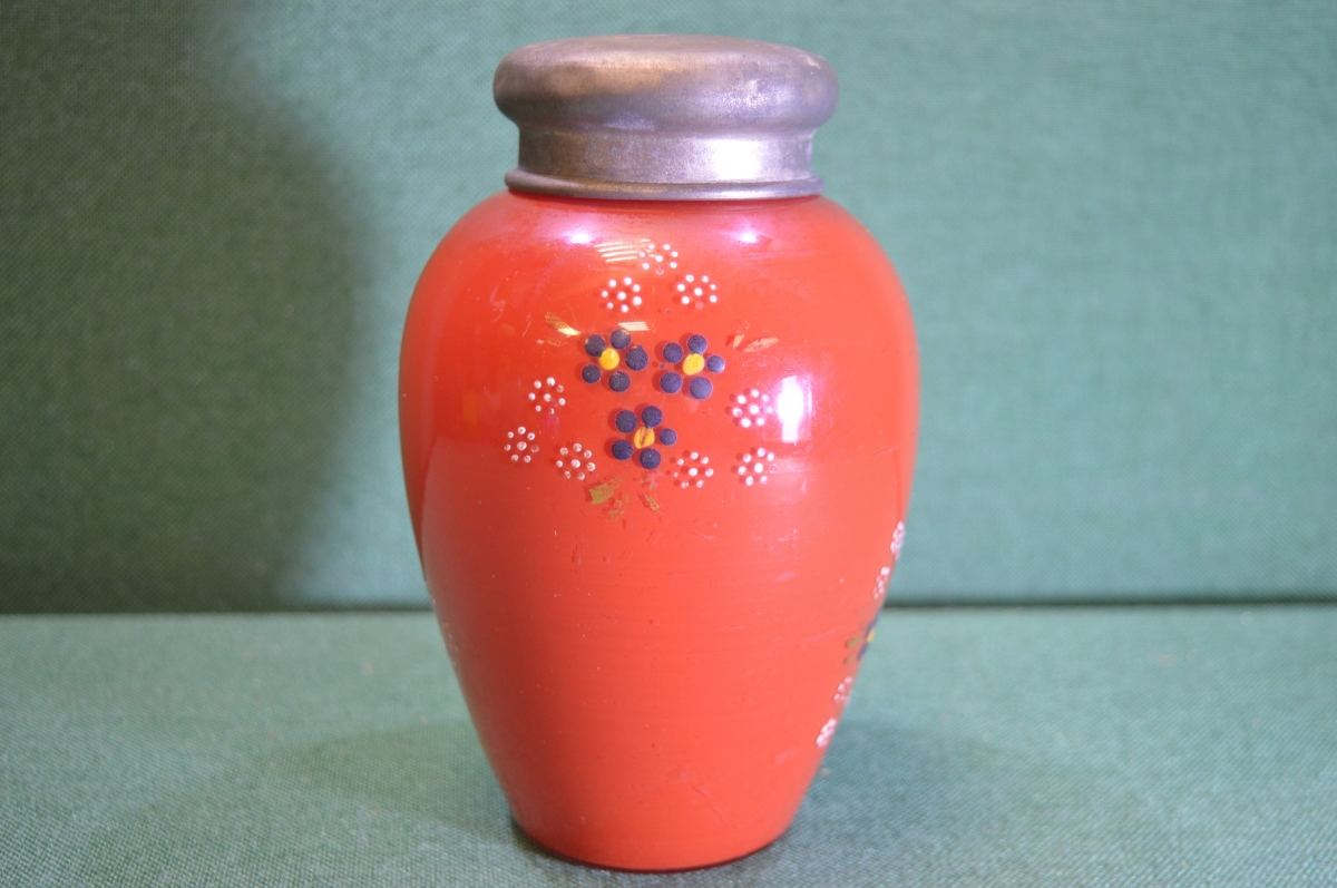 Чайница, чайная банка старинная стеклянная. Красная. Стекло. Подрисовка, цветы.