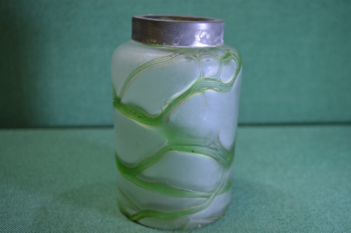 Чайница, чайная банка старинная стеклянная. Молочное и зеленое стекло. Модерн.