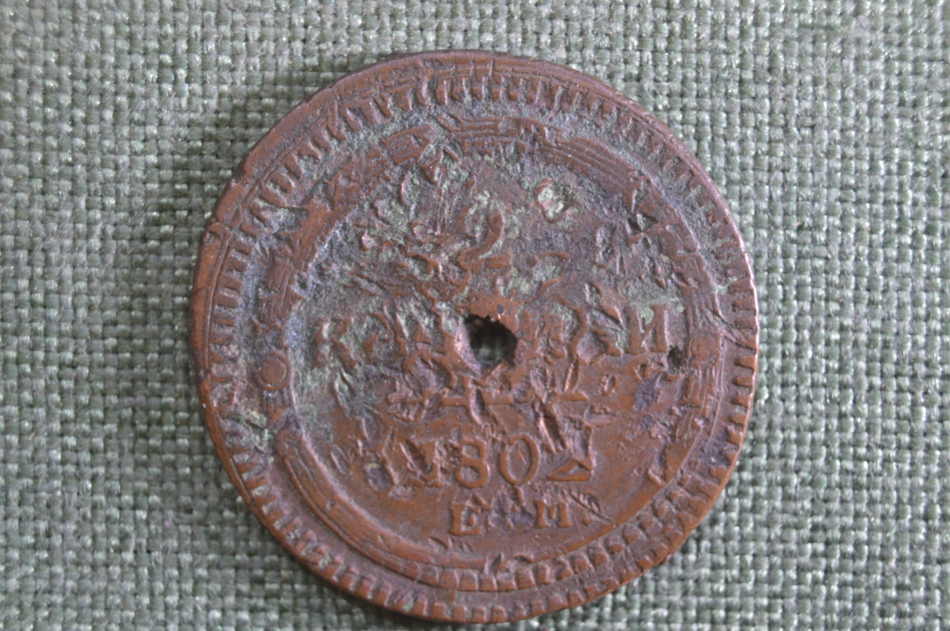 Монета 2 копейки 1802 года, ЕМ. Испорченная.