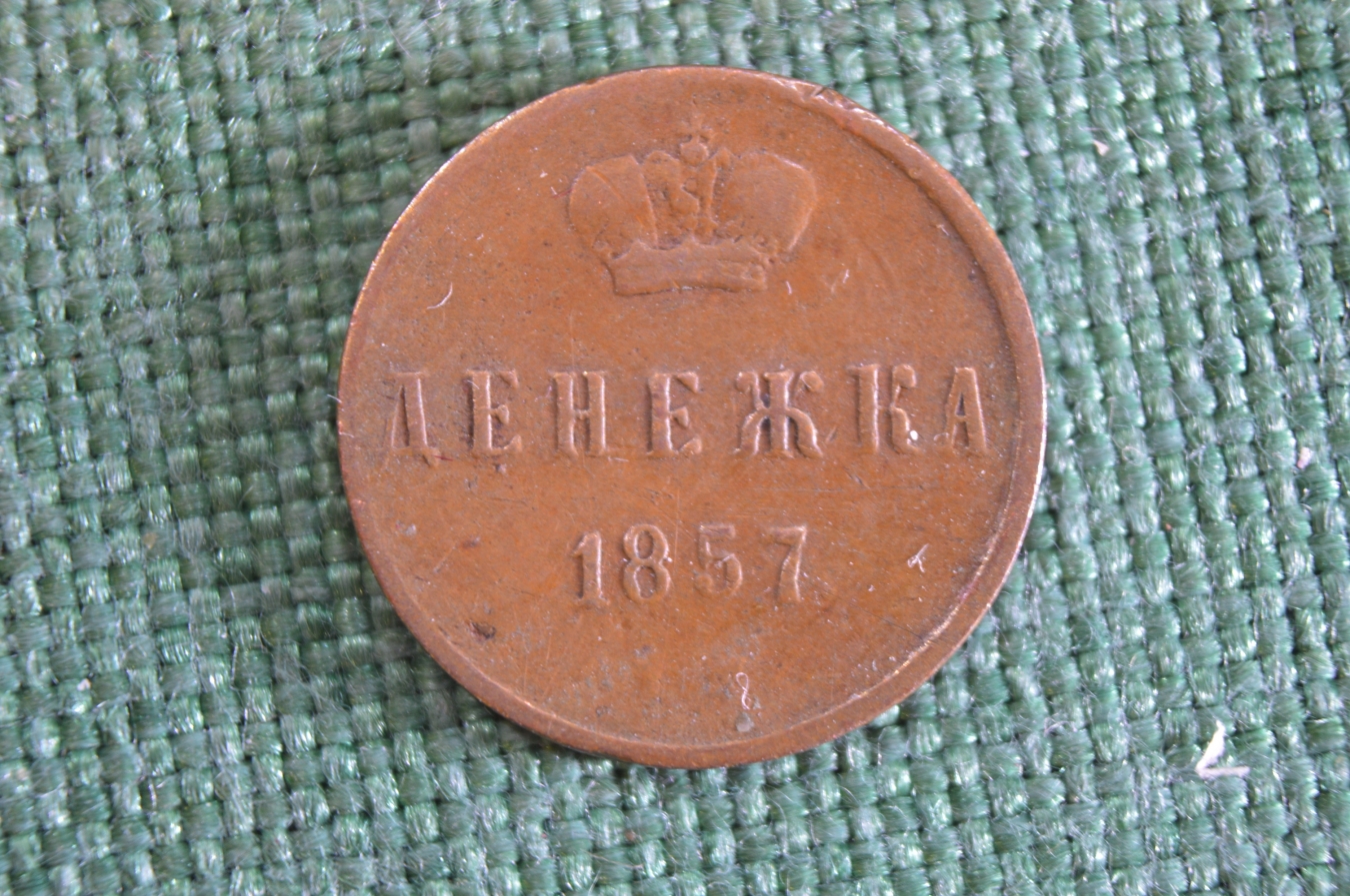 Монета Денежка 1857 года. Царская Россия.