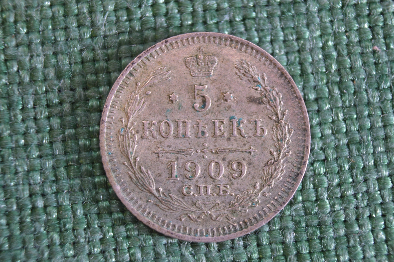 Монета 5 копеек 1909 года. Серебро. Царская Россия. UNC
