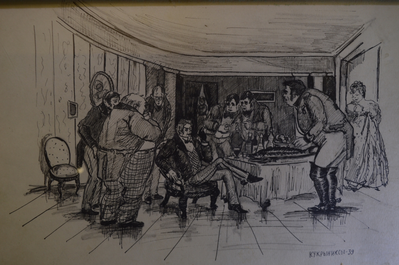 Картина, иллюстрация, комедия "Ревизор", Гоголь. Кукрыниксы, 1939 год.
