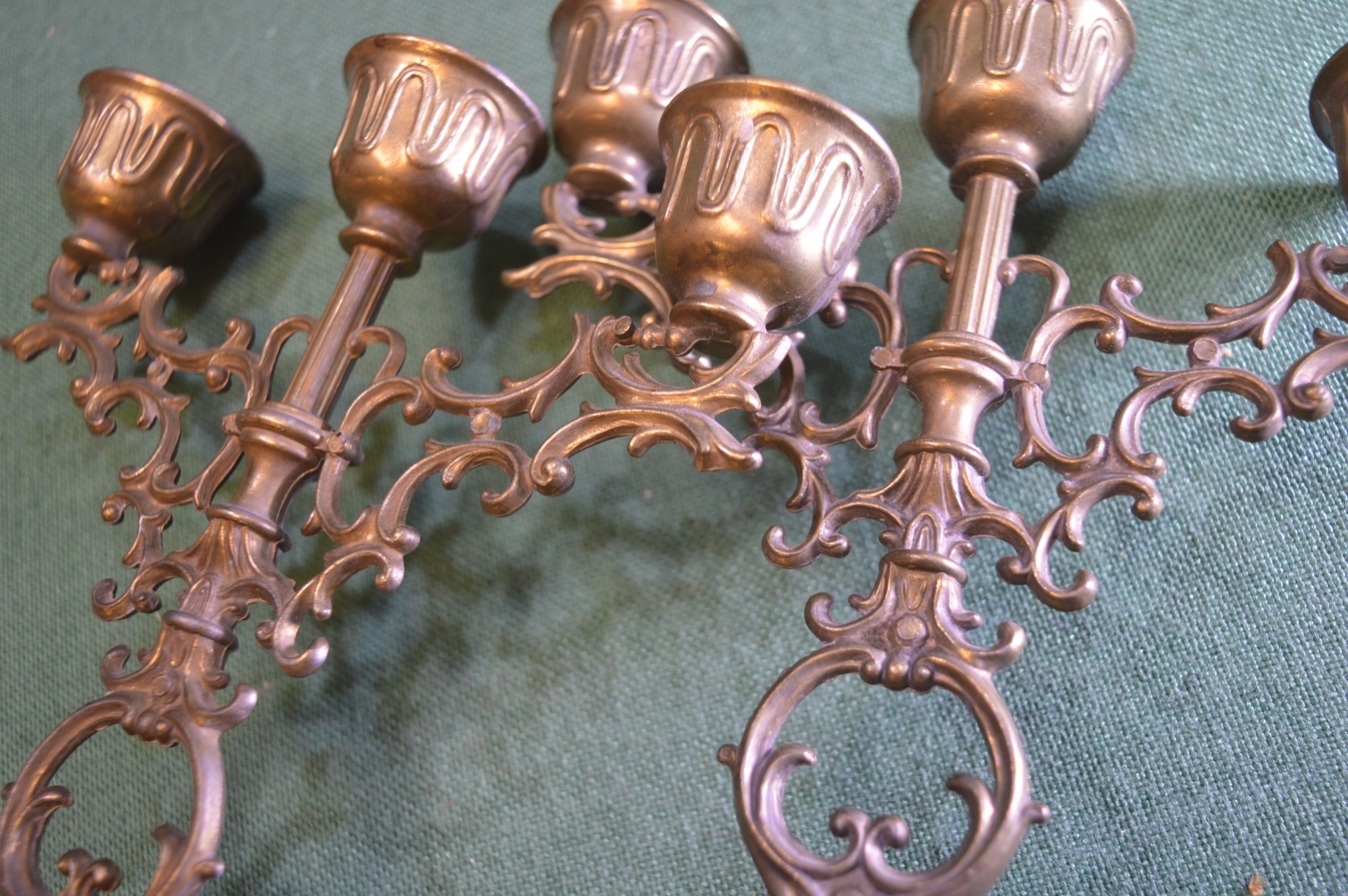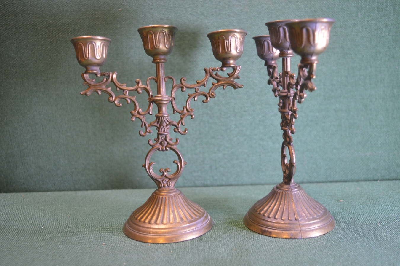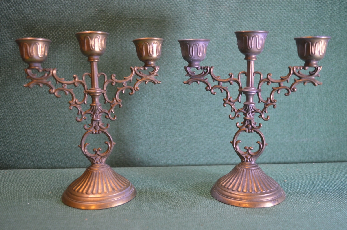 Подсвечник, канделябр. Парные канделябры (2 штуки). Бронзированный металл.