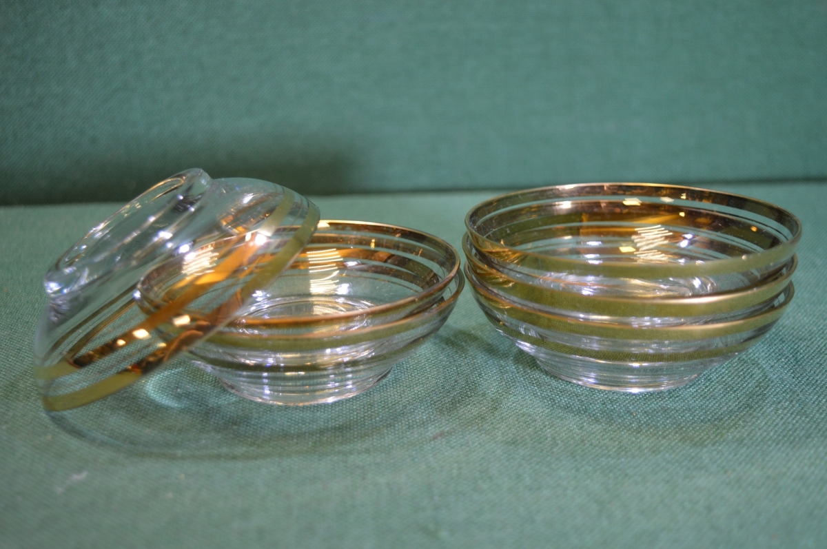 Мисочка, мисочки стеклянные, с золотым ободком (3 штуки). Стекло, позолота.