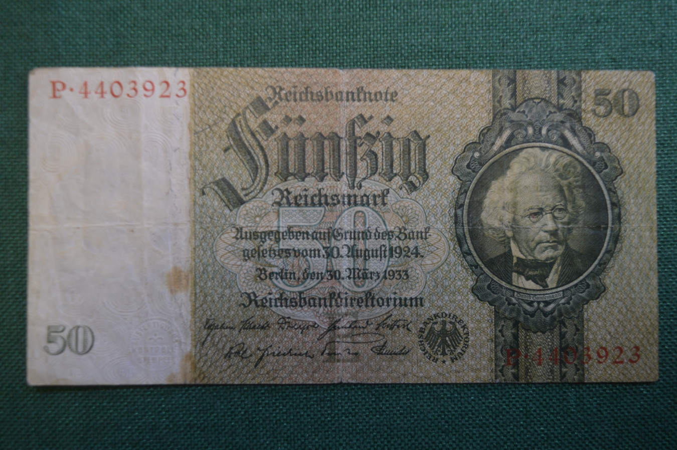 Бона, банкнота 50 марок, рейхсмарок 1933 год. Пятьдесят. Рейхсбанкнота. Рейх, Германия.
