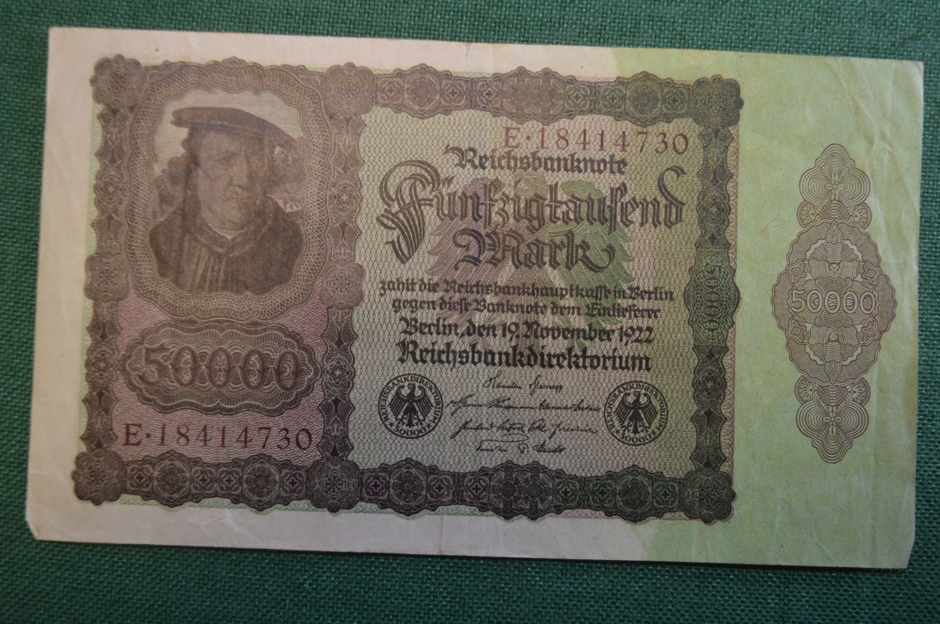Бона, банкнота 50000 марок 1922 год. Пятьдесят тысяч. Рейхсбанкнота. Веймар, Германия.