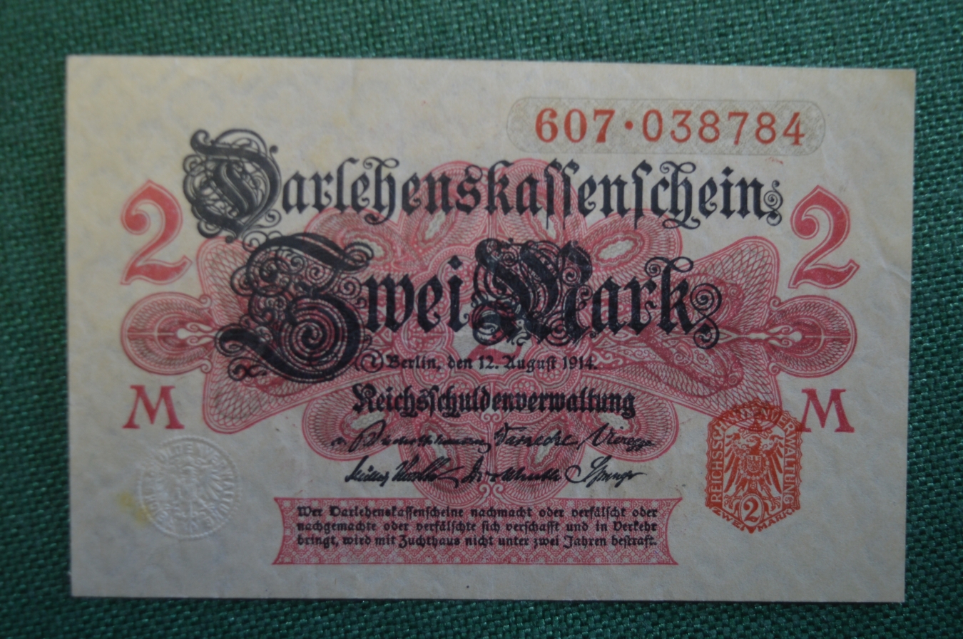 Бона, банкнота 2 марки 1914 год. Германская Империя. Германия. #2