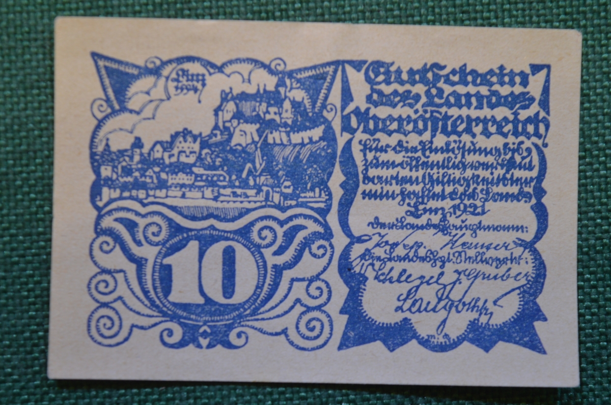 Нотгельд, бона 10 пфеннигов 1921 год, Oberofterreich. Германия.