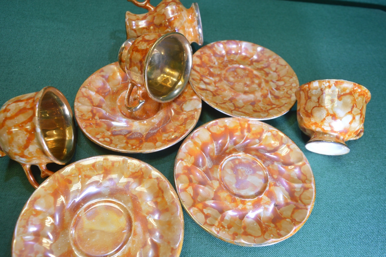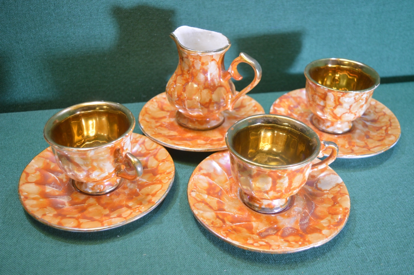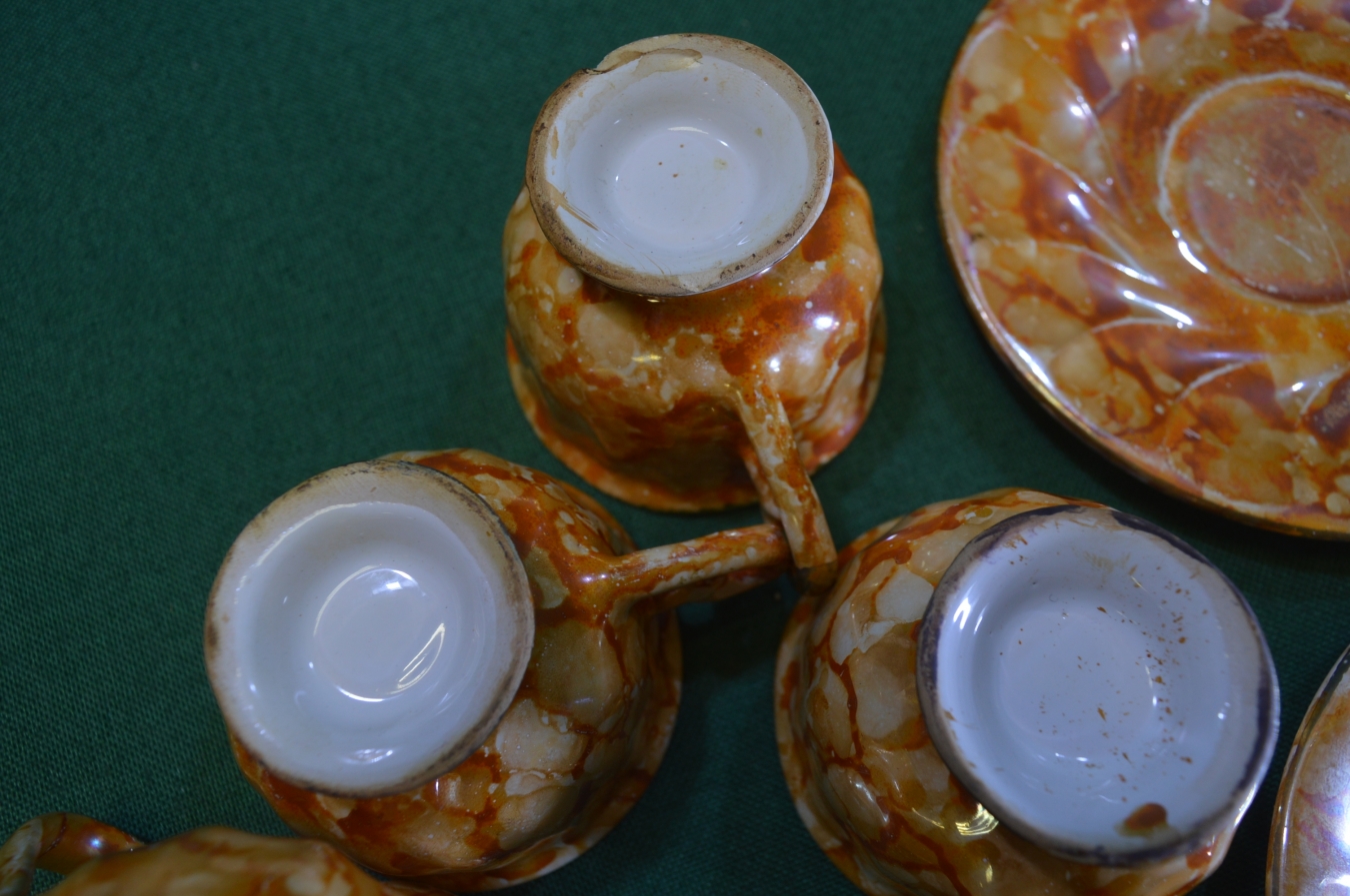 Сервиз, чайные пары с молочником. Керамика. Потертости, производственные дефекты.