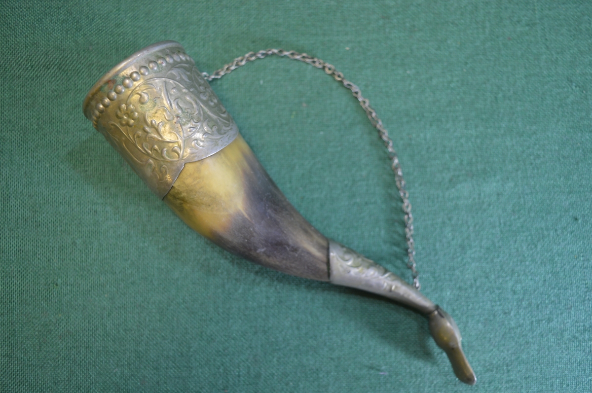 Рог сувенирный для вина. Мельхиор.