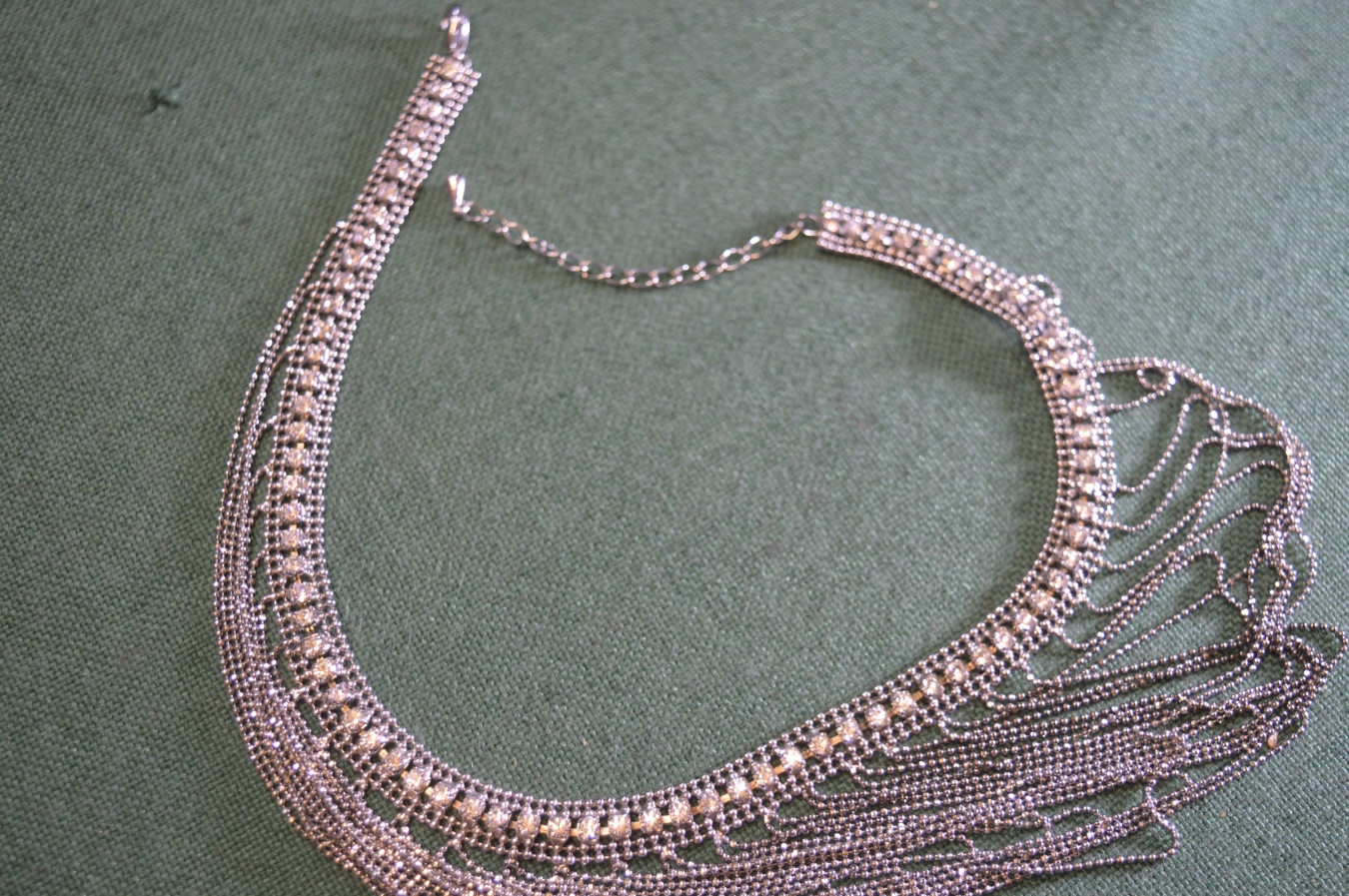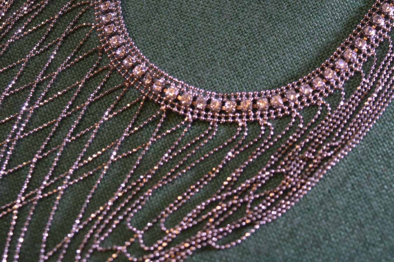 Ожерелье с цепочками и стразами, шейное украшение. Металл.