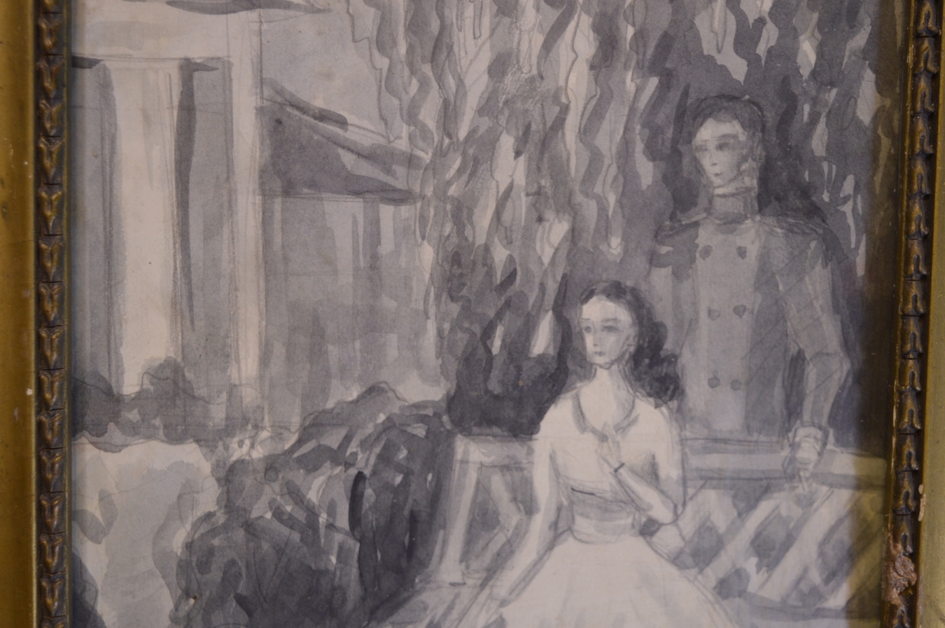 картина, старинная, акварель,