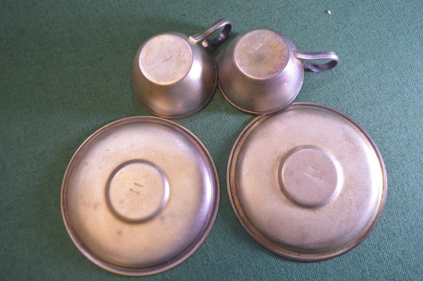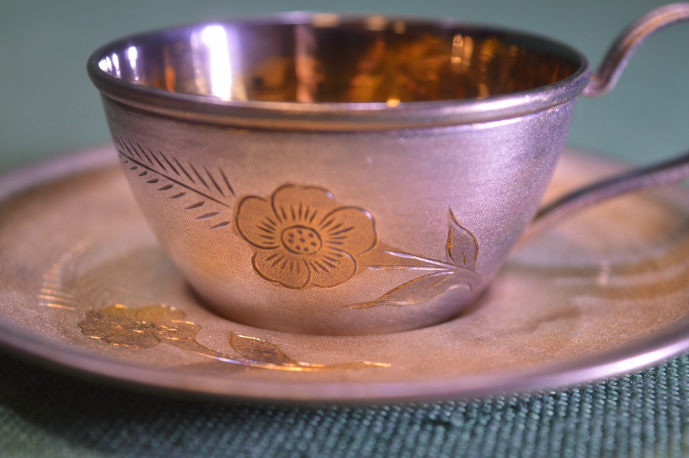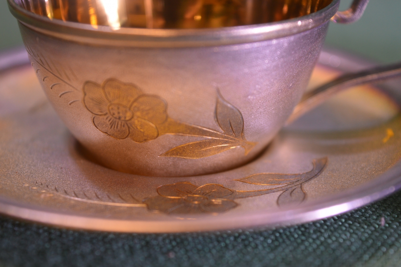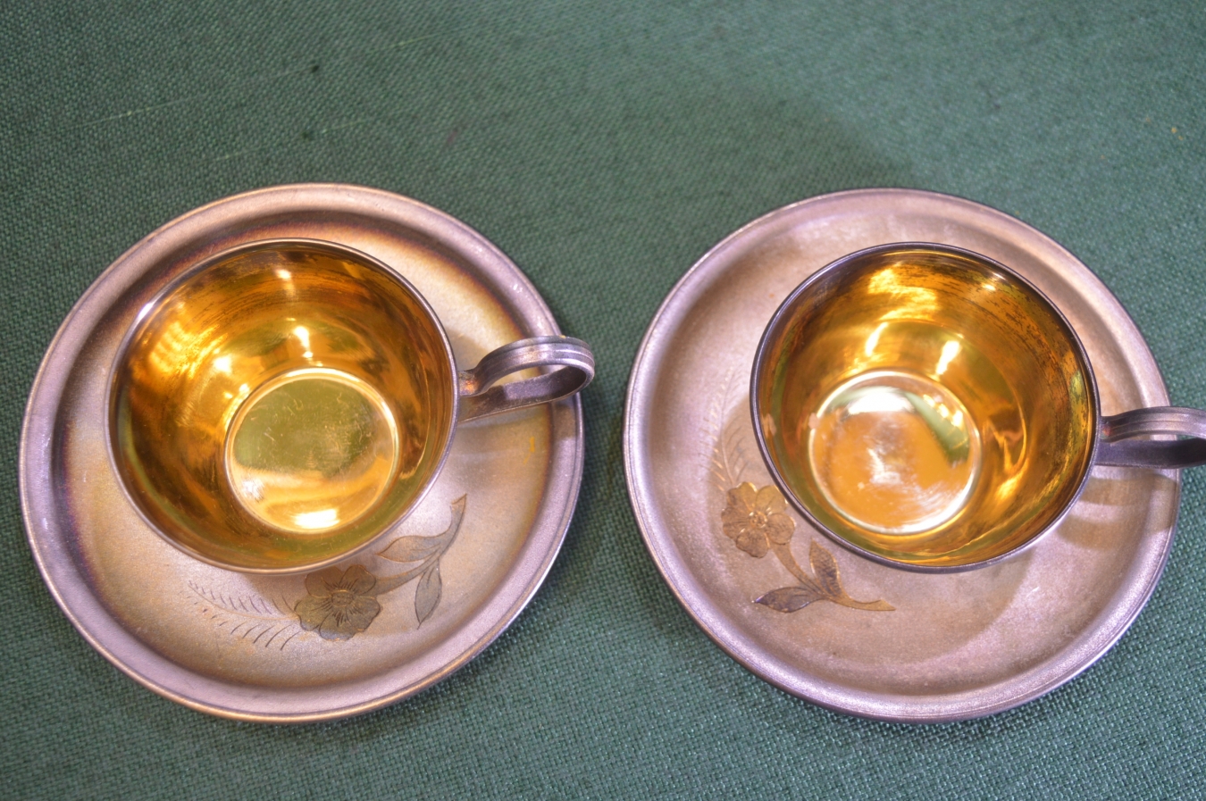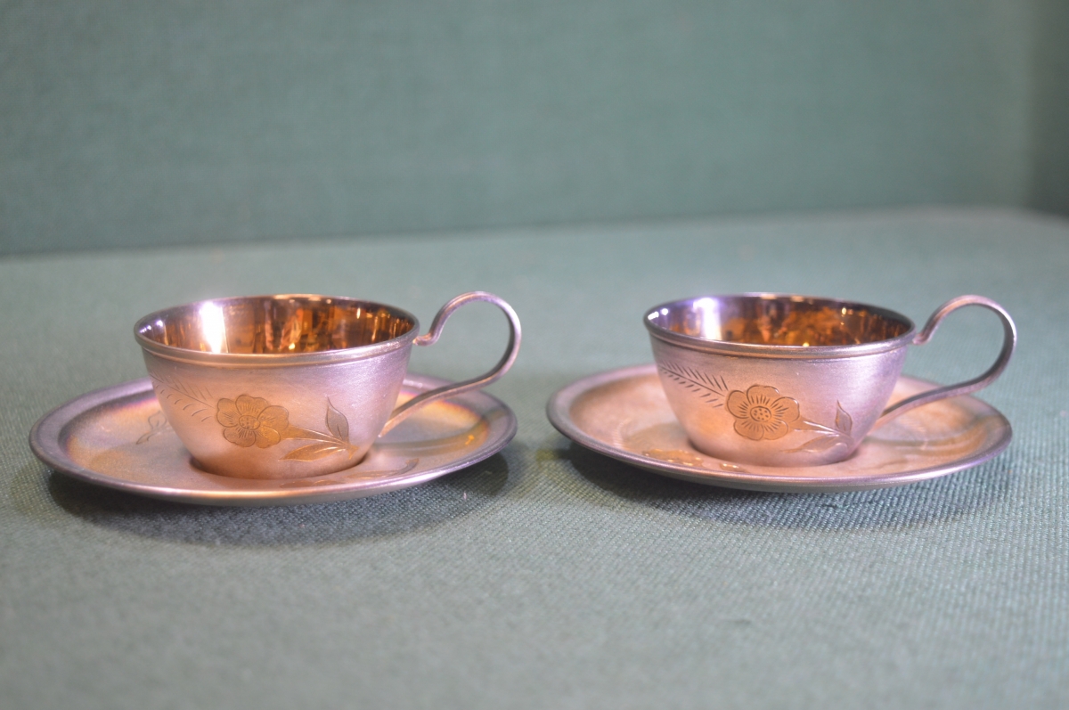 Чайная пара. Мельхиор. Резьба. Позолота. ЮММЕТ. СССР.