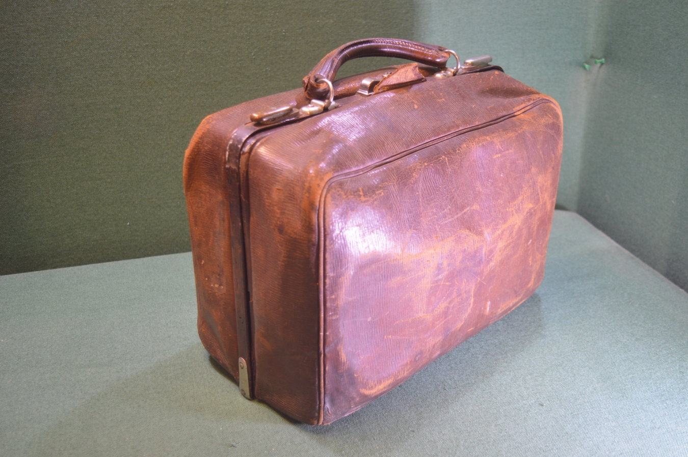 Саквояж чемоданчик доктора старинный. Кожа. W. Nissen. Санкт-Петербург. Царская Россия.