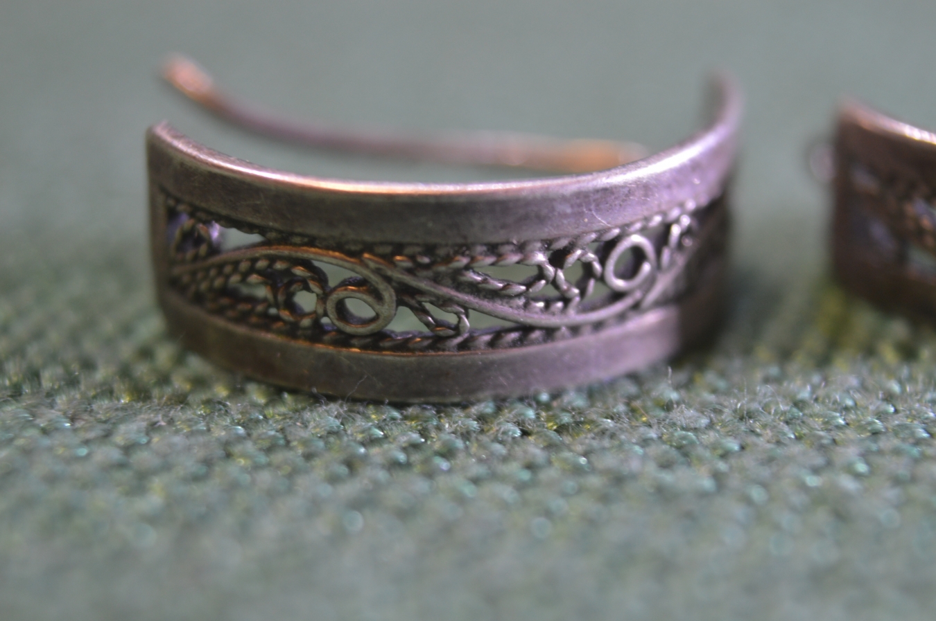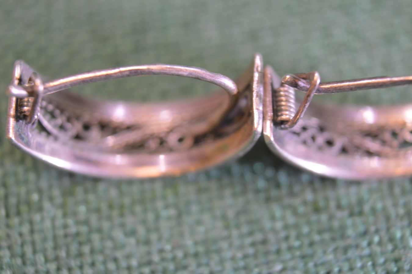 Серьги полукольца. Серебро 925 проба Звезда. Скань, филигрань. СССР.