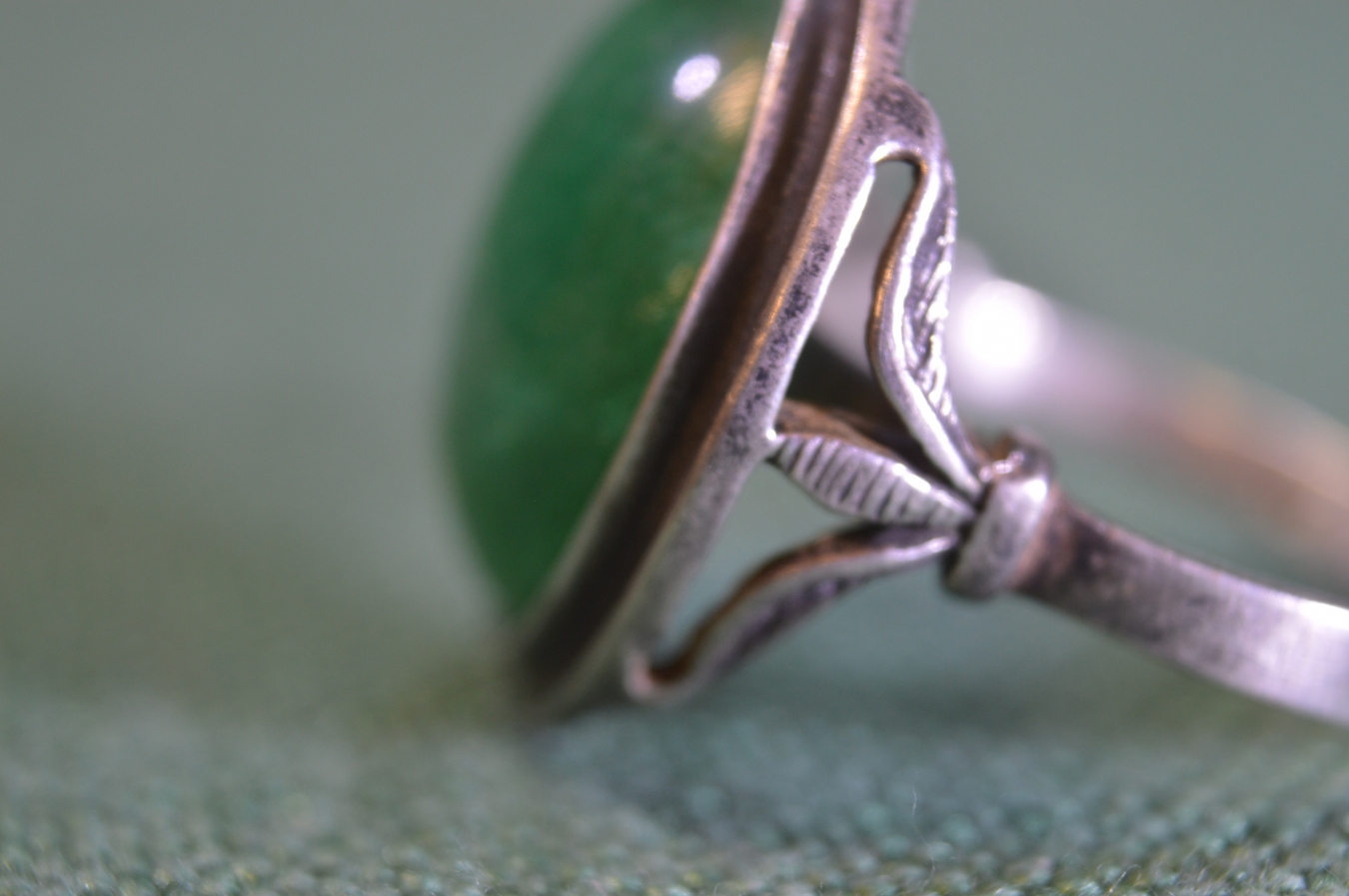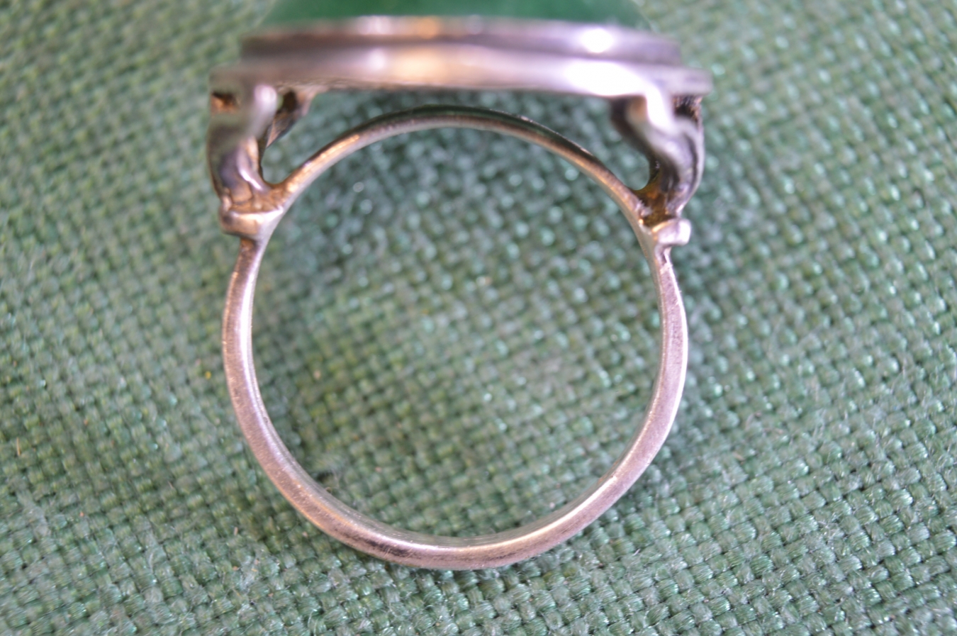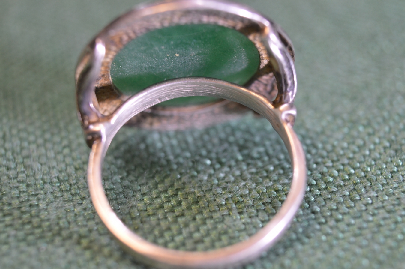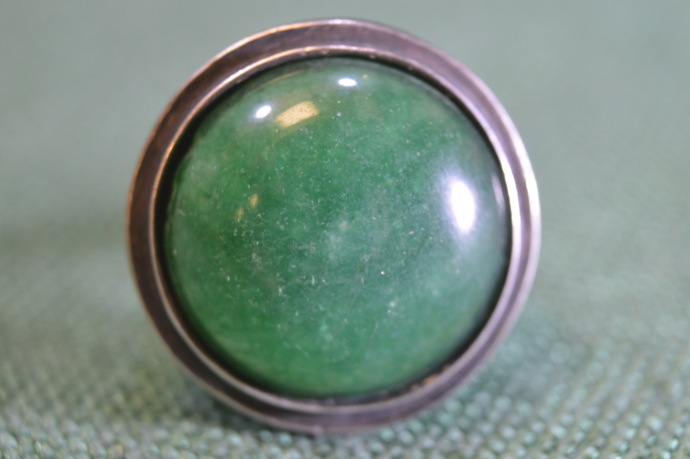 Кольцо крупное. Зеленый камень. Серебро. Винтаж. Вероятно Восток.