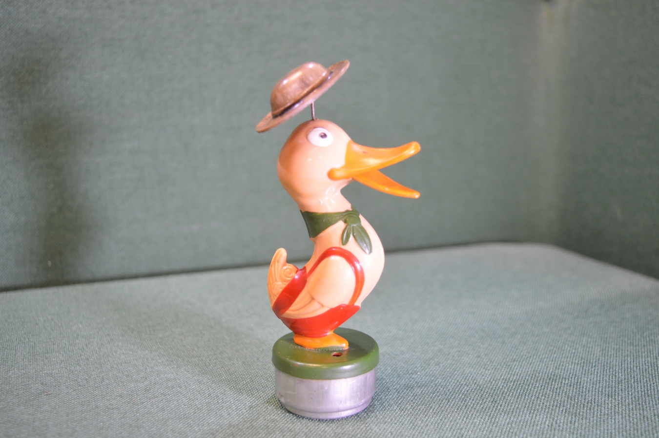 Игрушка "Утка утенок в шляпе". Колкий пластик. Страуме. Straume. СССР.