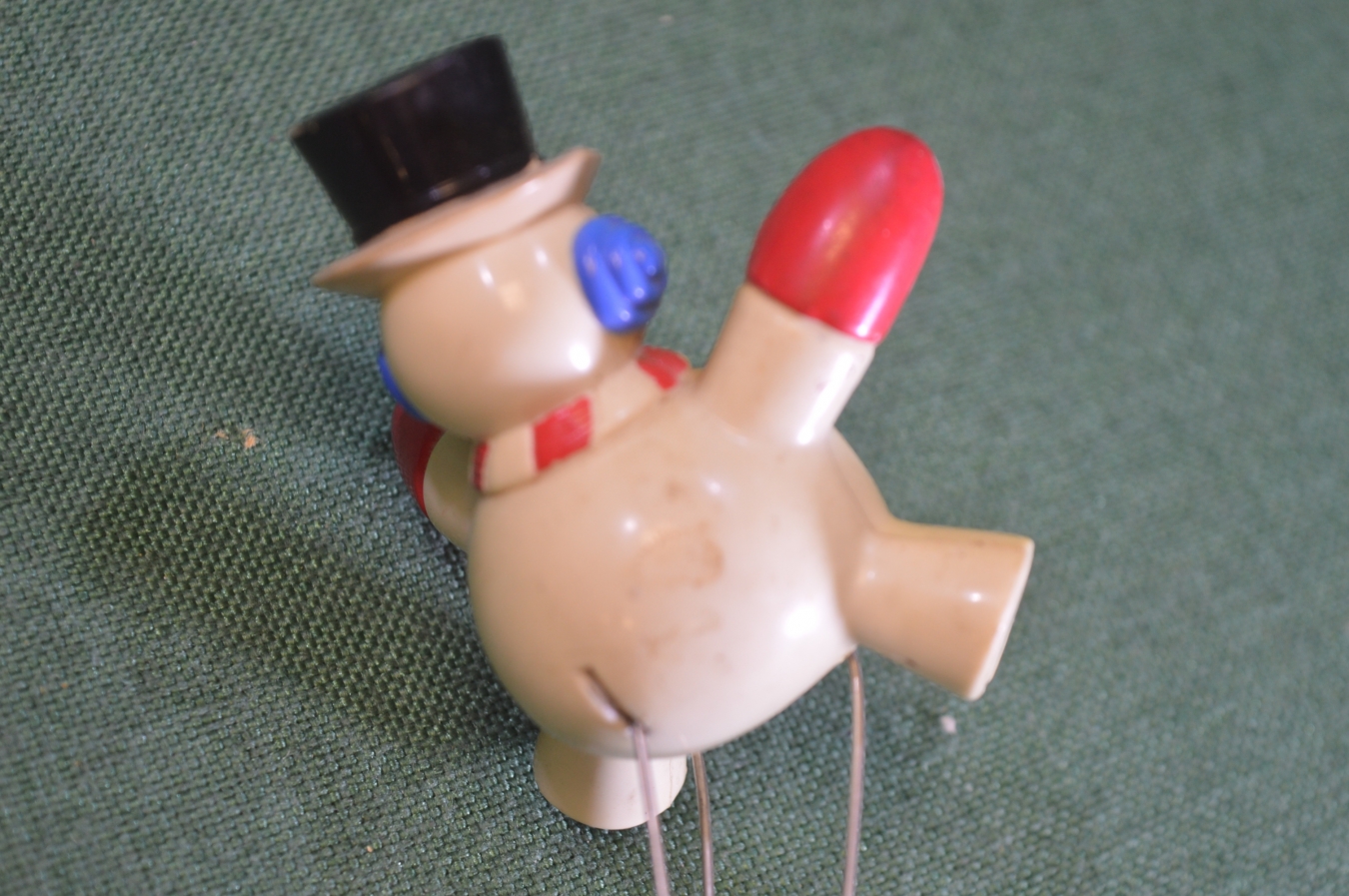 Игрушка "Запуск воздушного шара Снеговик". Колкий пластик. Винтаж. 1960е.